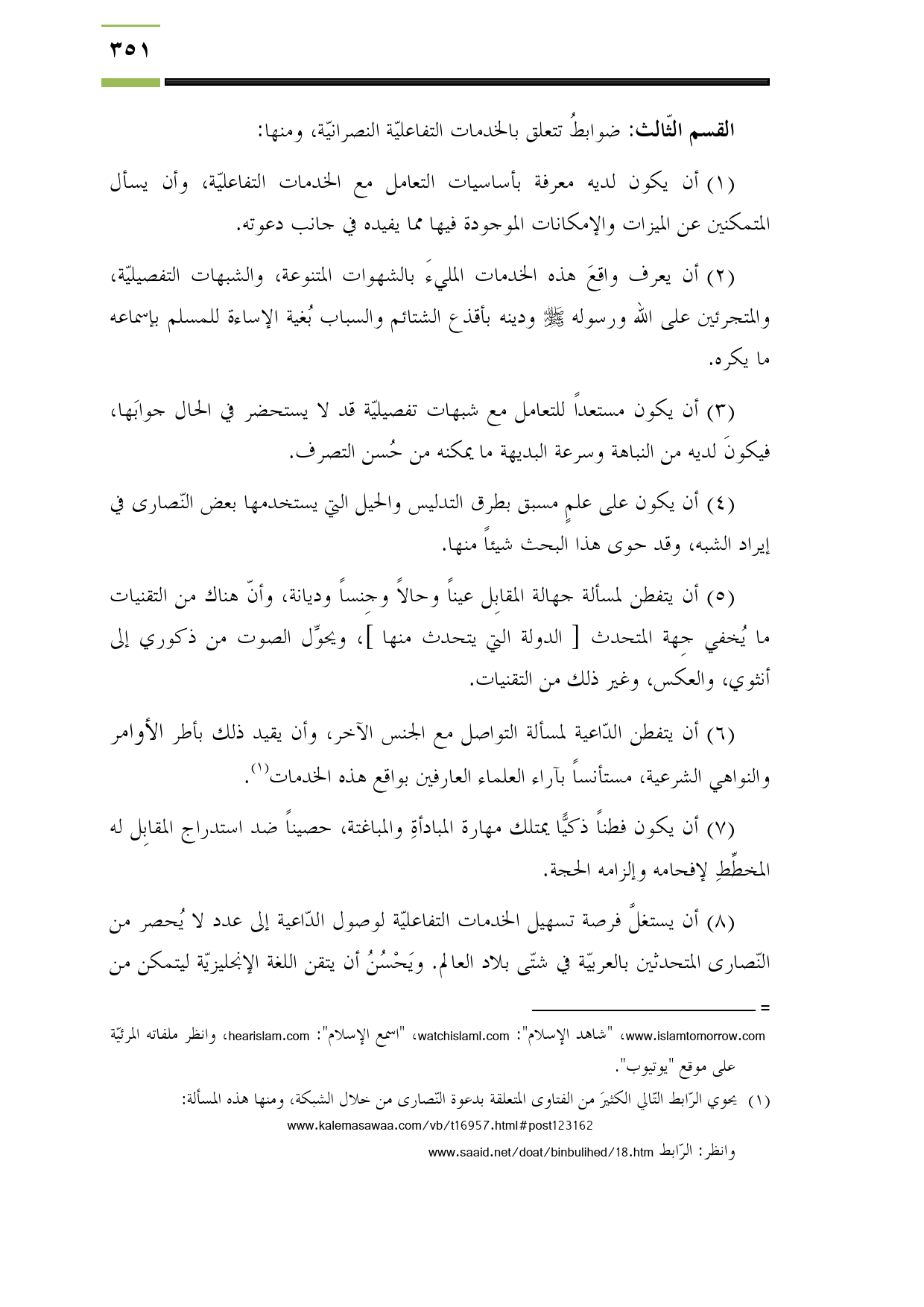 القسم الثّالث: ضوابطُ تتعلق بالخدمات التفاعليّة النصرانيّة، ومنها: