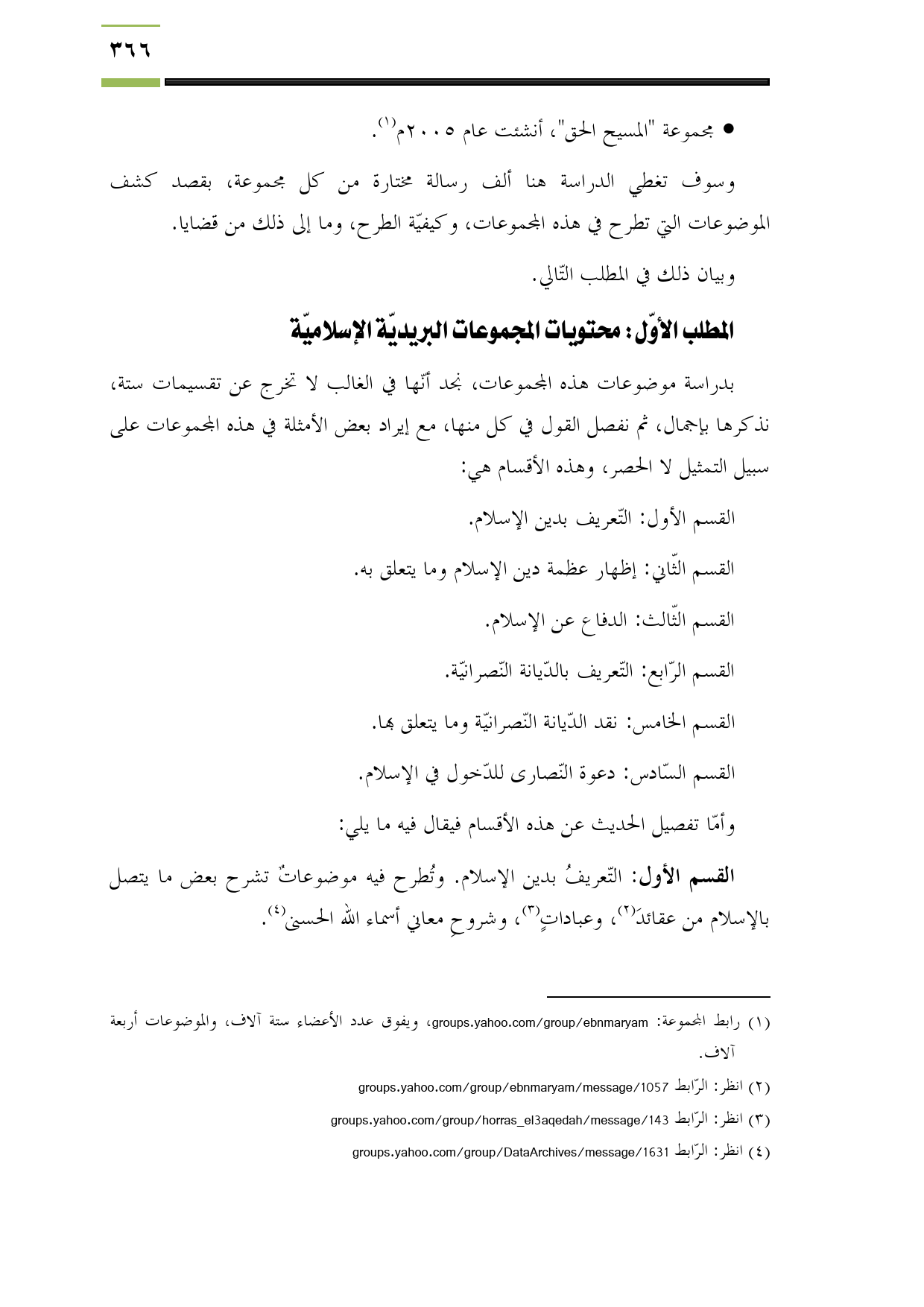 (¬1) رابط المجموعة: groups.yahoo.com/group/ebnmaryam، ويفوق عدد الأعضاء ستة آلاف، والموضوعات أربعة آلاف.