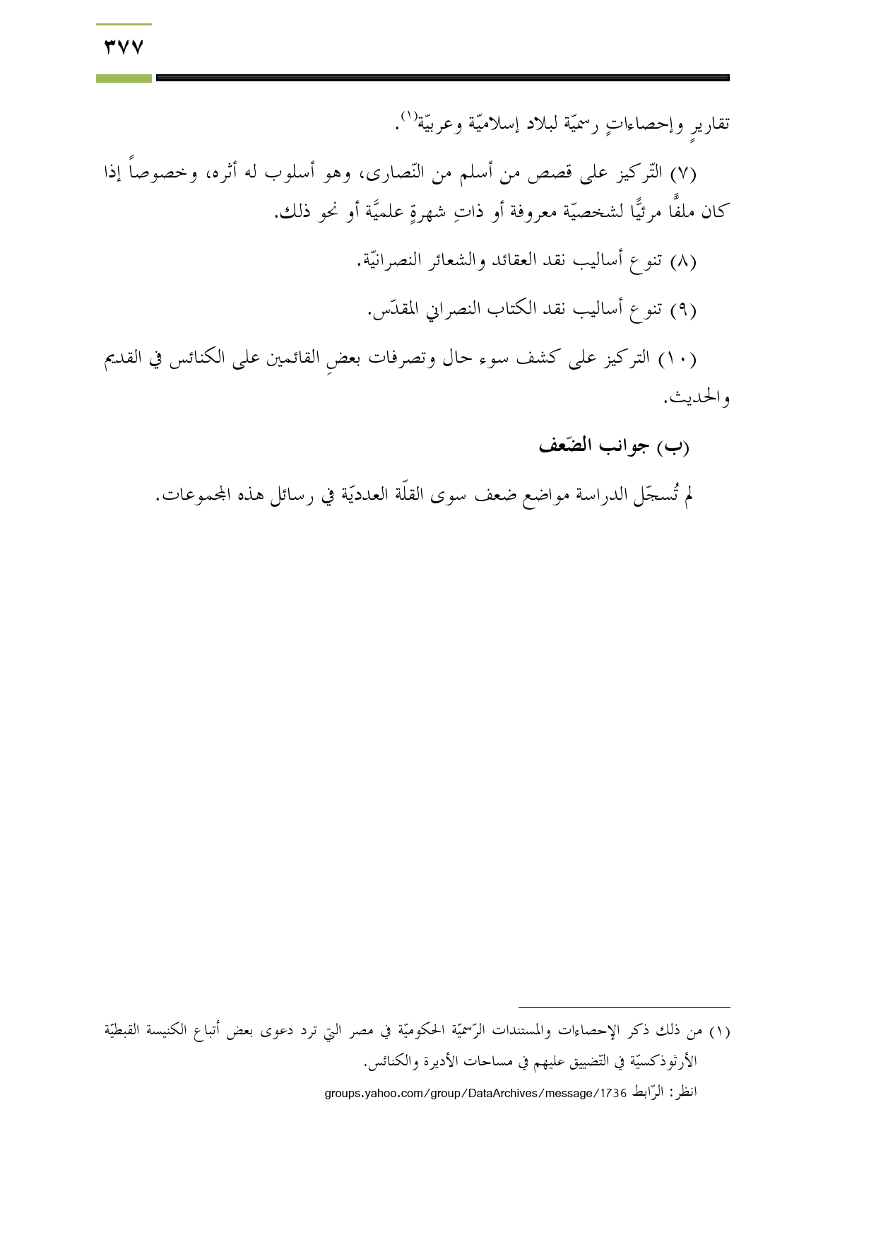 (¬1) من ذلك ذكر الإحصاءات والمستندات الرّسميّة الحكوميّة في مصر التي ترد دعوى بعض أتباع الكنيسة القبطيّة الأرثوذكسيّة في التّضييق عليهم في مساحات الأديرة والكنائس.