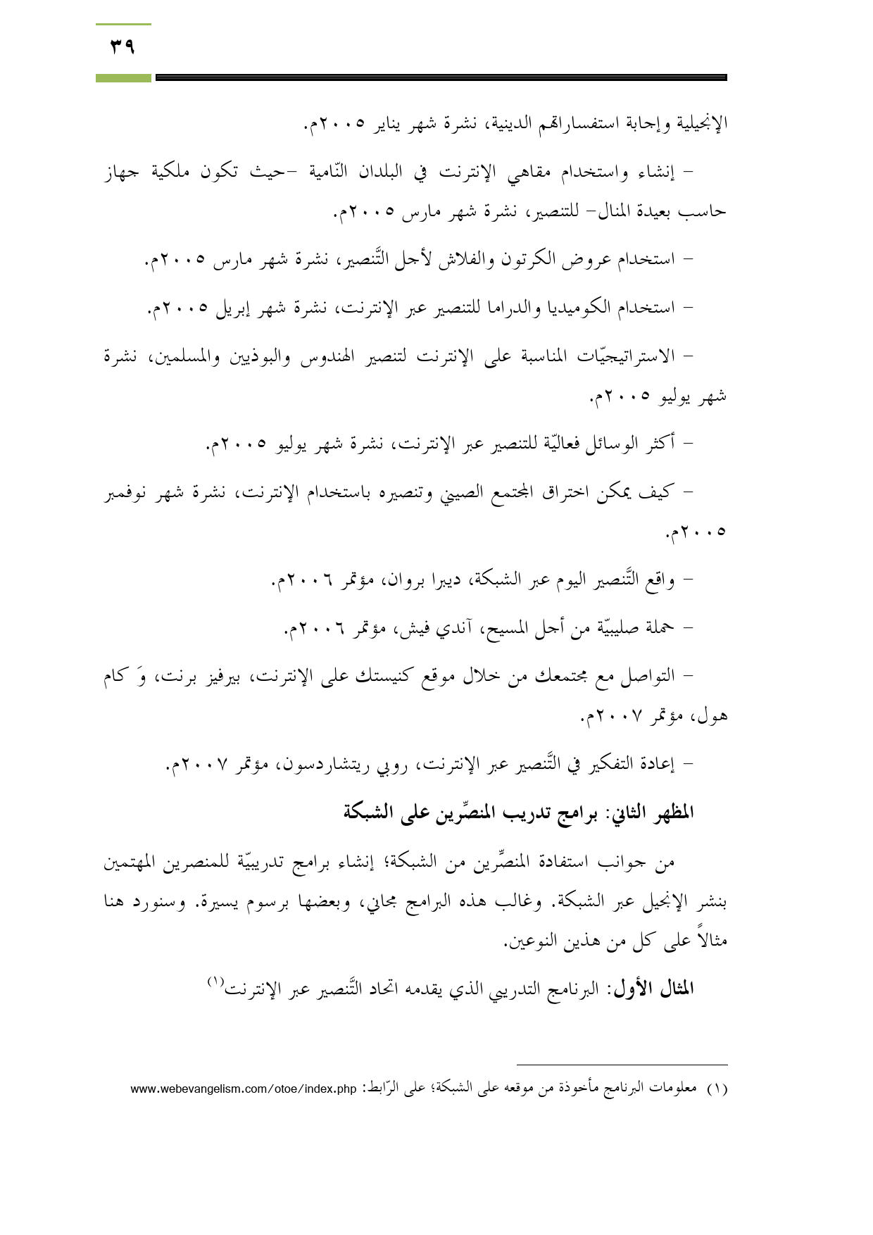المظهر الثاني: برامج تدريب المنصِّرين على الشبكة