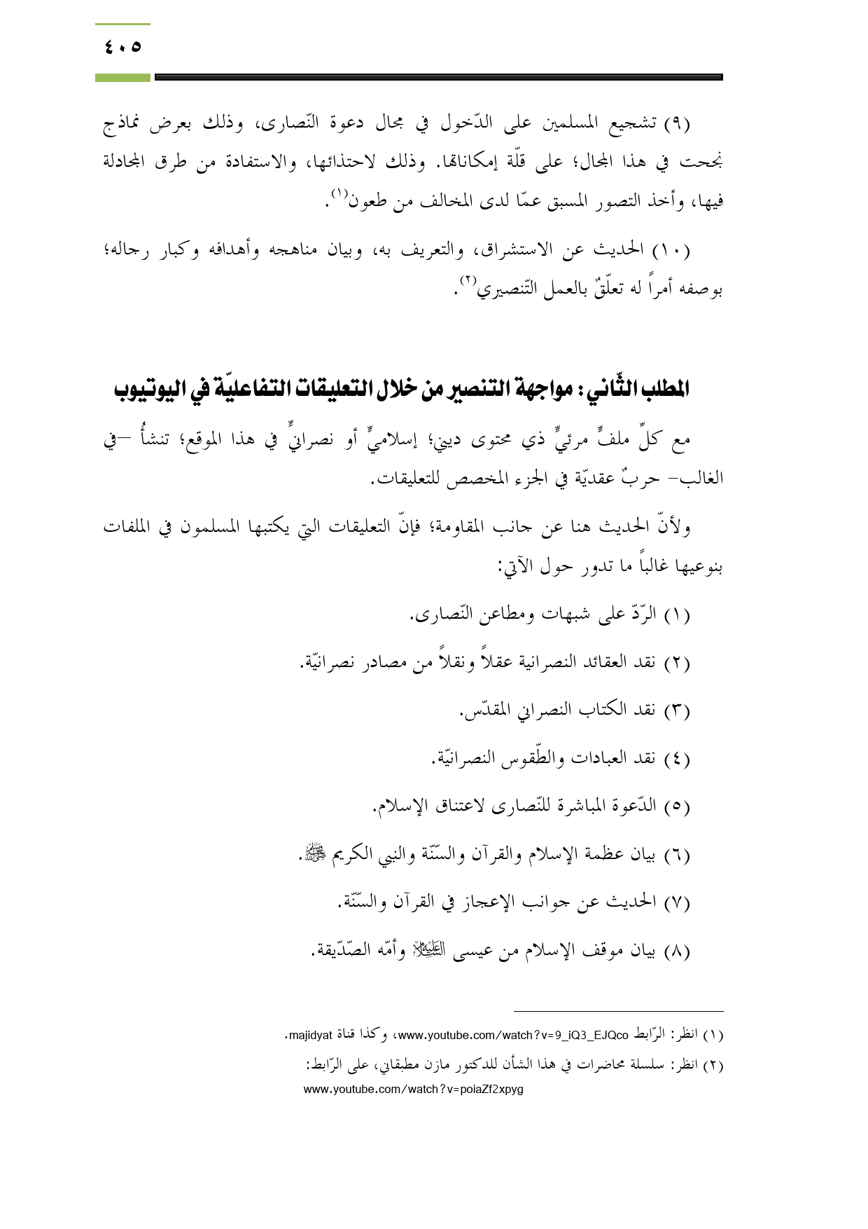 المطلب الثّاني: مواجهة التنصير من خلال التعليقات التفاعليّة في اليوتيوب