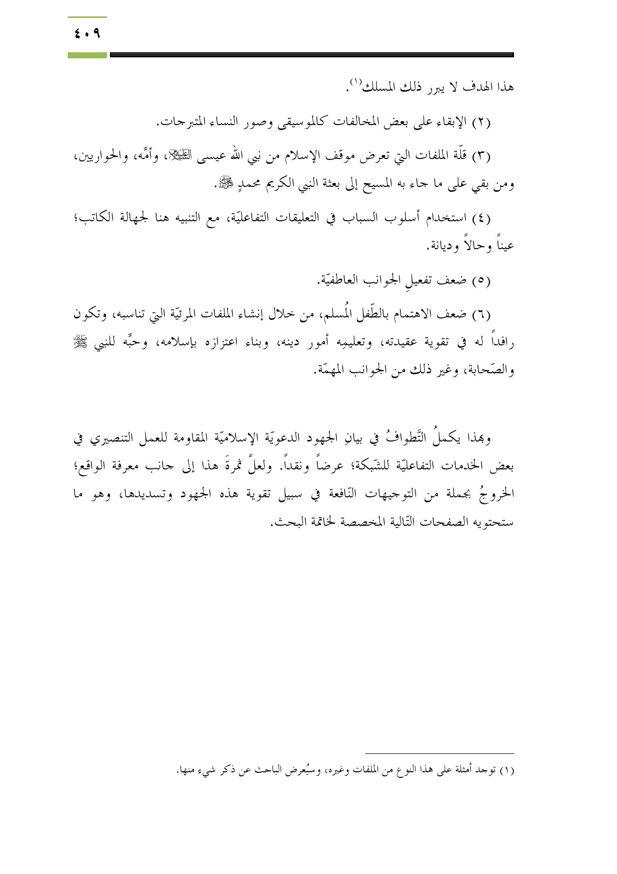 ضعف الاهتمام بالطّفل المُسلم، من خلال إنشاء الملفات المرئيّة التي تناسبه، وتكون رافداً له في تقوية عقيدته، وتعليمِه أمور دينه، وبناء اعتزازه بإسلامه، وحبِّه للنبي - صلى الله عليه وسلم - والصّحابة، وغير ذلك من الجوانب المهمّة.