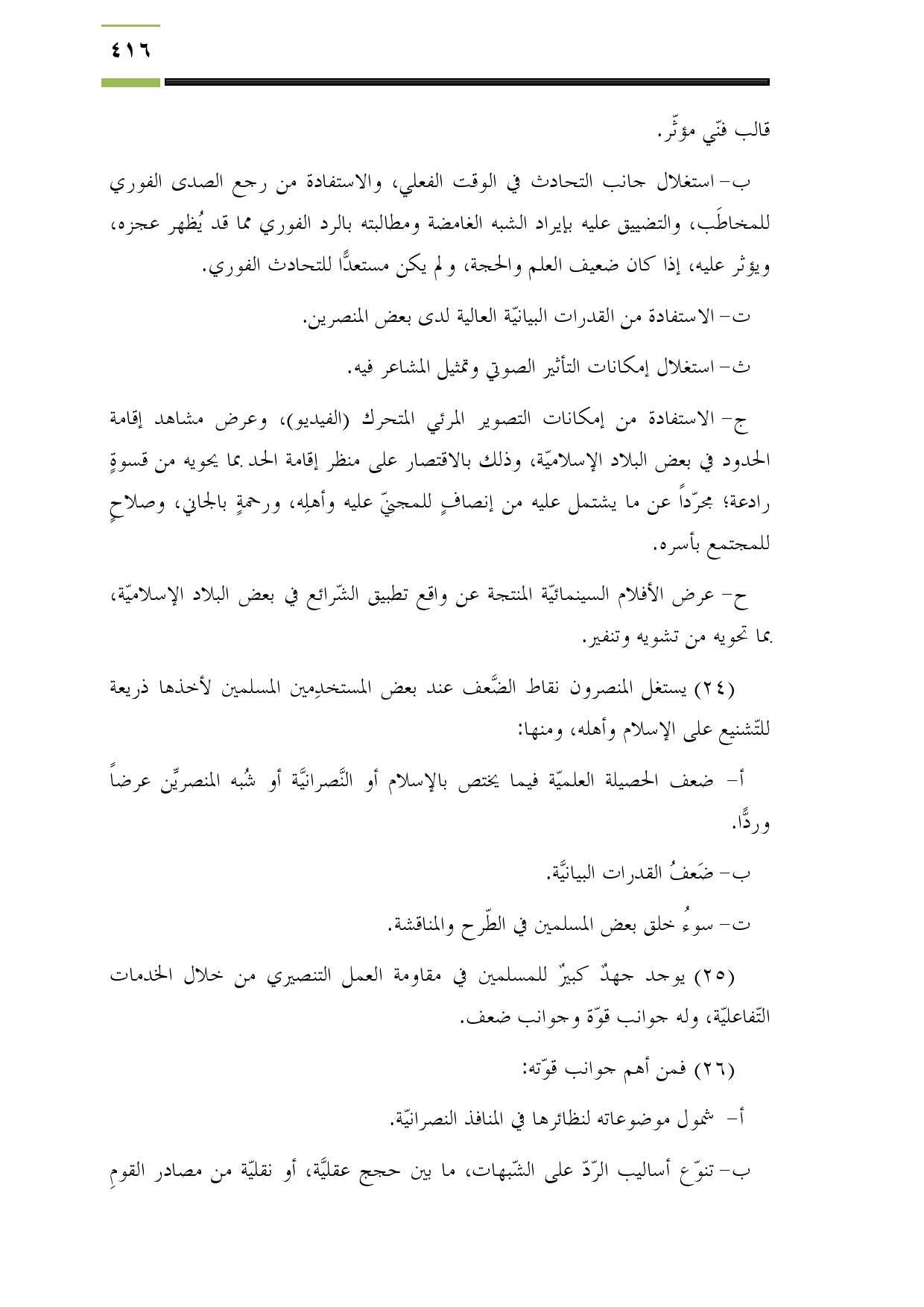 الاستفادة من القدرات البيانيّة العالية لدى بعض المنصرين.