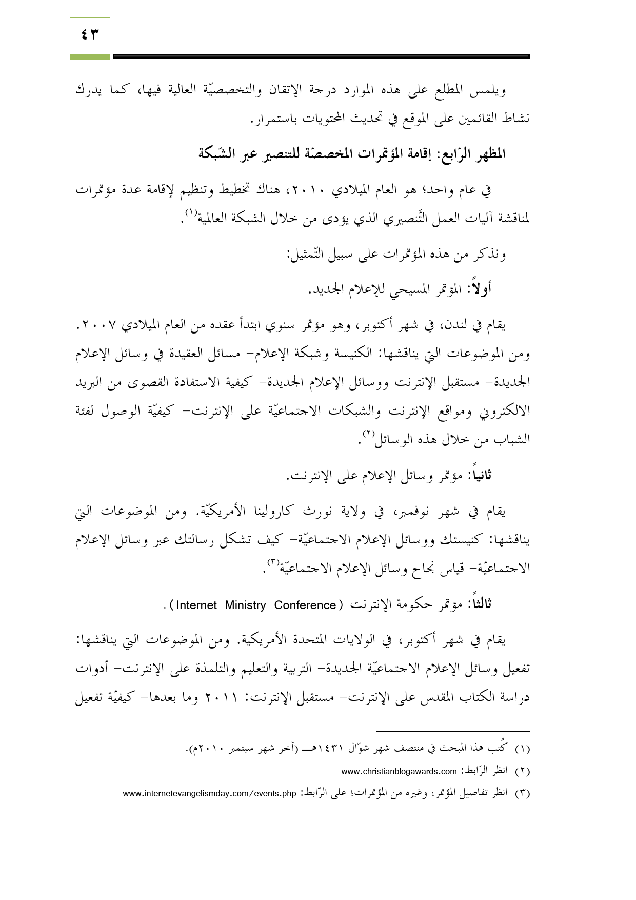 (¬3) انظر تفاصيل المؤتمر، وغيره من المؤتمرات؛ على الرّابط: www.internetevangelismday.com/events.php