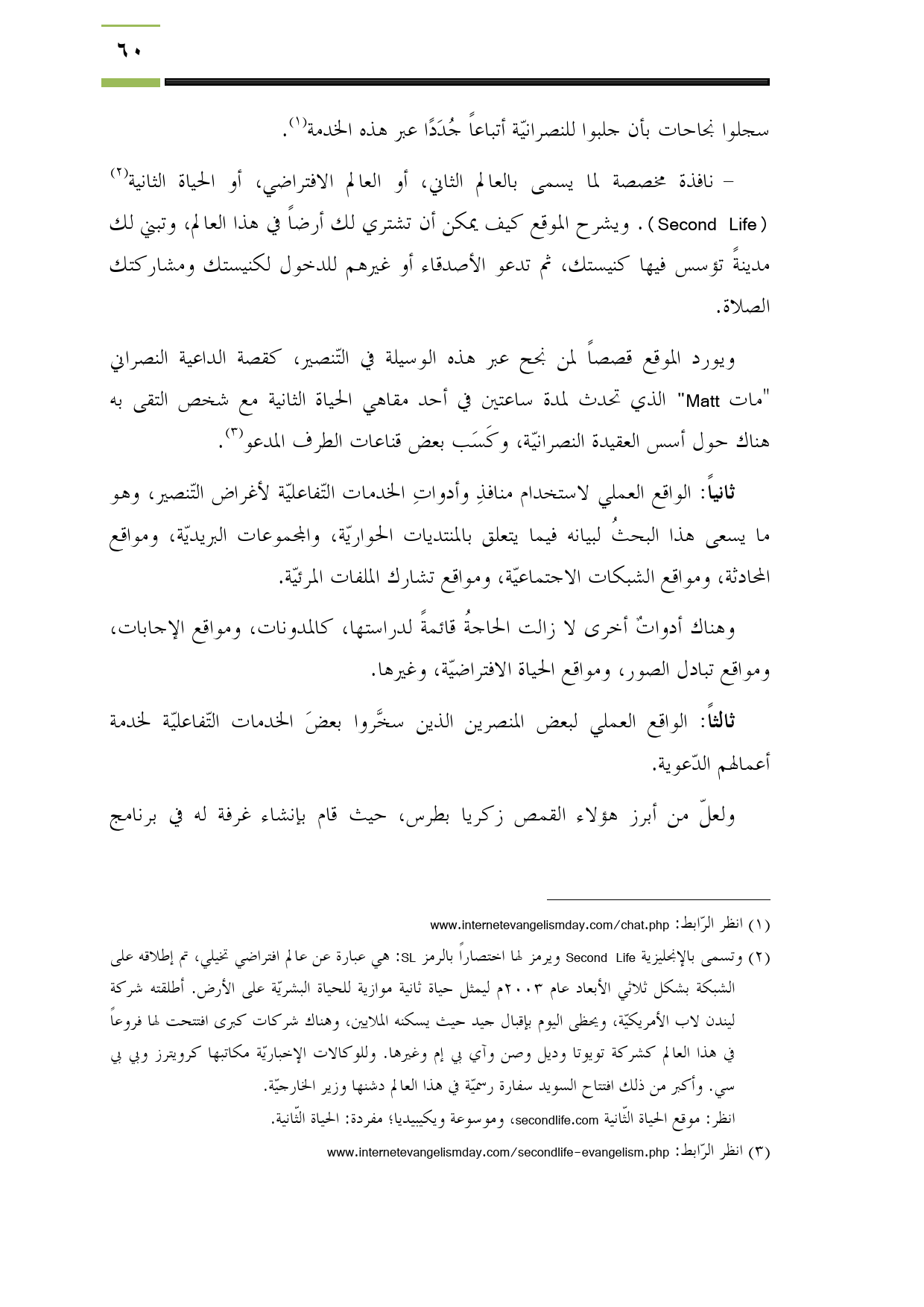 (¬3) انظر الرّابط: www.internetevangelismday.com/secondlife-evangelism.php