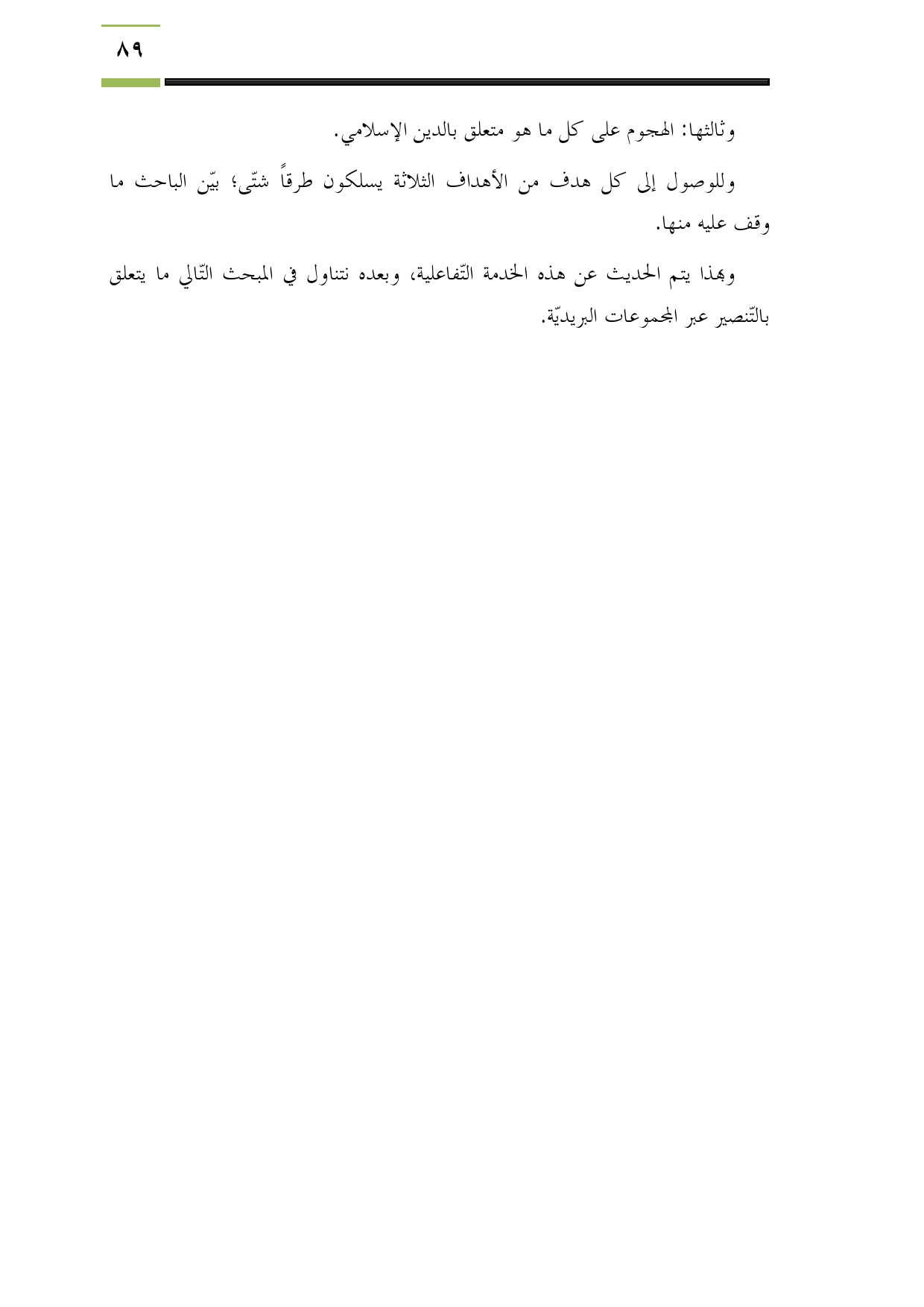 وبهذا يتم الحديث عن هذه الخدمة التّفاعلية، وبعده نتناول في المبحث التّالي ما يتعلق بالتّنصير عبر المجموعات البريديّة.