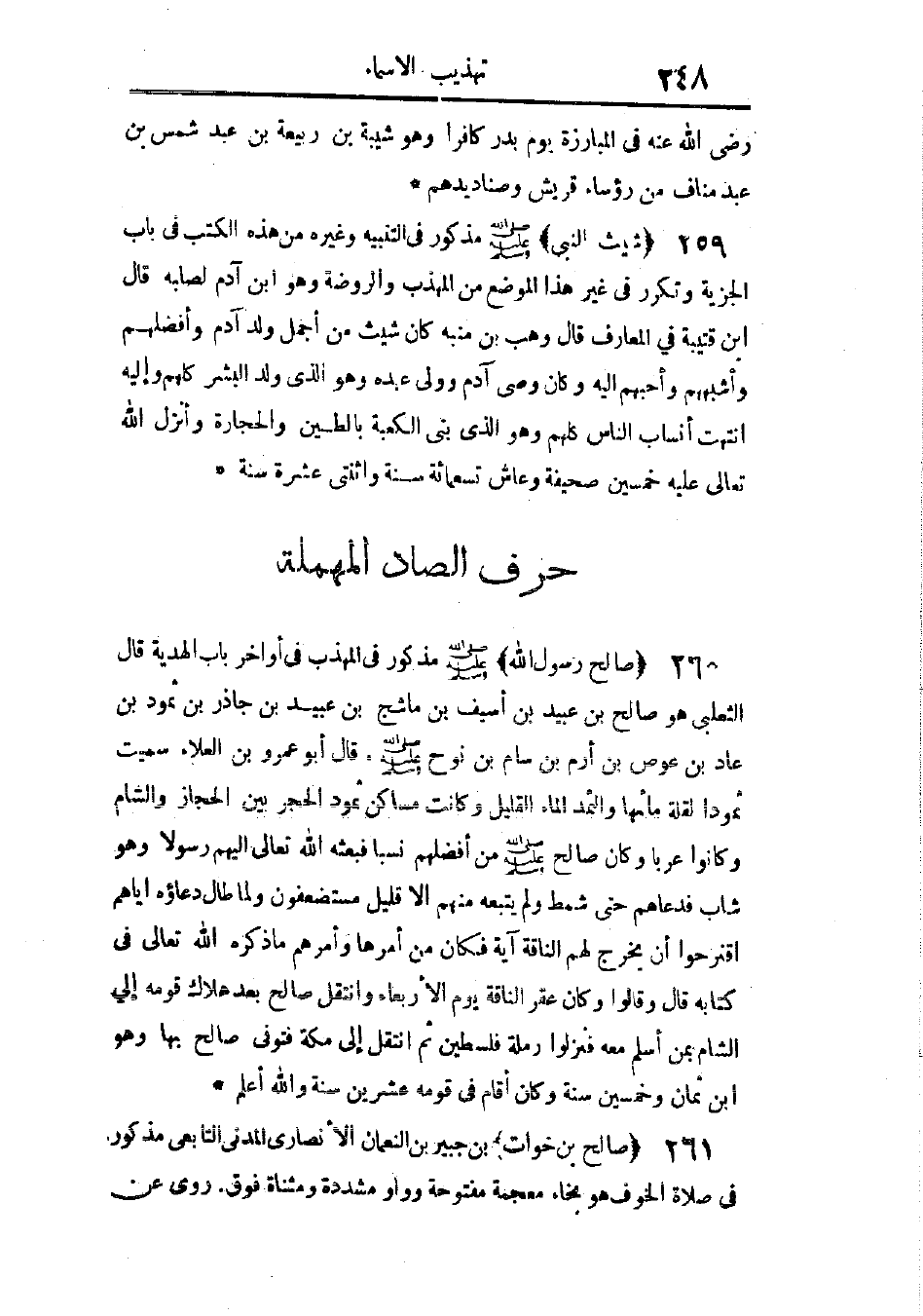 مذكور فى المهذب فى أواخر باب الهدية. قال الثعلبى: هو صالح بن عبيد بن لأسيف بن ماشج بن عبيد بن جاذر بن ثمود بن عاد بن عوص بن أرم بن سام بن نوح، عليه السلام. قال أبو عمرو بن العلاء: سميت ثمودًا لقلة مائها، والثمد الماء القليل، وكانت مساكن ثمود الحجر بين الحجاز والشام، وكانوا عربًا، وكان صالح، عليه السلام، من أفضلهم نسبًا، فبعثه الله تعالى إليهم رسولاً وهو شاب، فدعاهم حتى شمط، ولم يتبعه منهم إلا قليل مستضعفون، ولما طال دعاؤه إياهم اقترحوا أن يخرج لهم الناقة آية، فكان من أمرها وأمرهم ما ذكره الله تعالى فى كتابه.