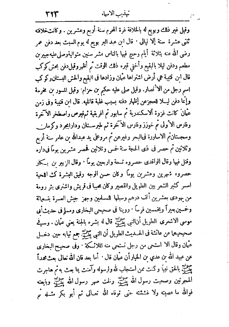 قال ابن قتيبة: وفى زمن عثمان كانت غزوة الأسكندرية، ثم سابور، ثم إفريقية، ثم قبرص، واصطخر الآخر، وفارس الأولى، ثم خوزز، وفارس الآخرة، ثم طبرستان، ودارا بجرد، وكرمان، وسجستان، ثم الأساورة فى البحر، وغيرهن، ثم مرو على يد عبد الله بن عامر سنة أربع وثلاثين، ثم حصر فى ذى الحجة سنة خمس وثلاثين، فحصر عشرين يومًا فى داره، وقتل فيها.