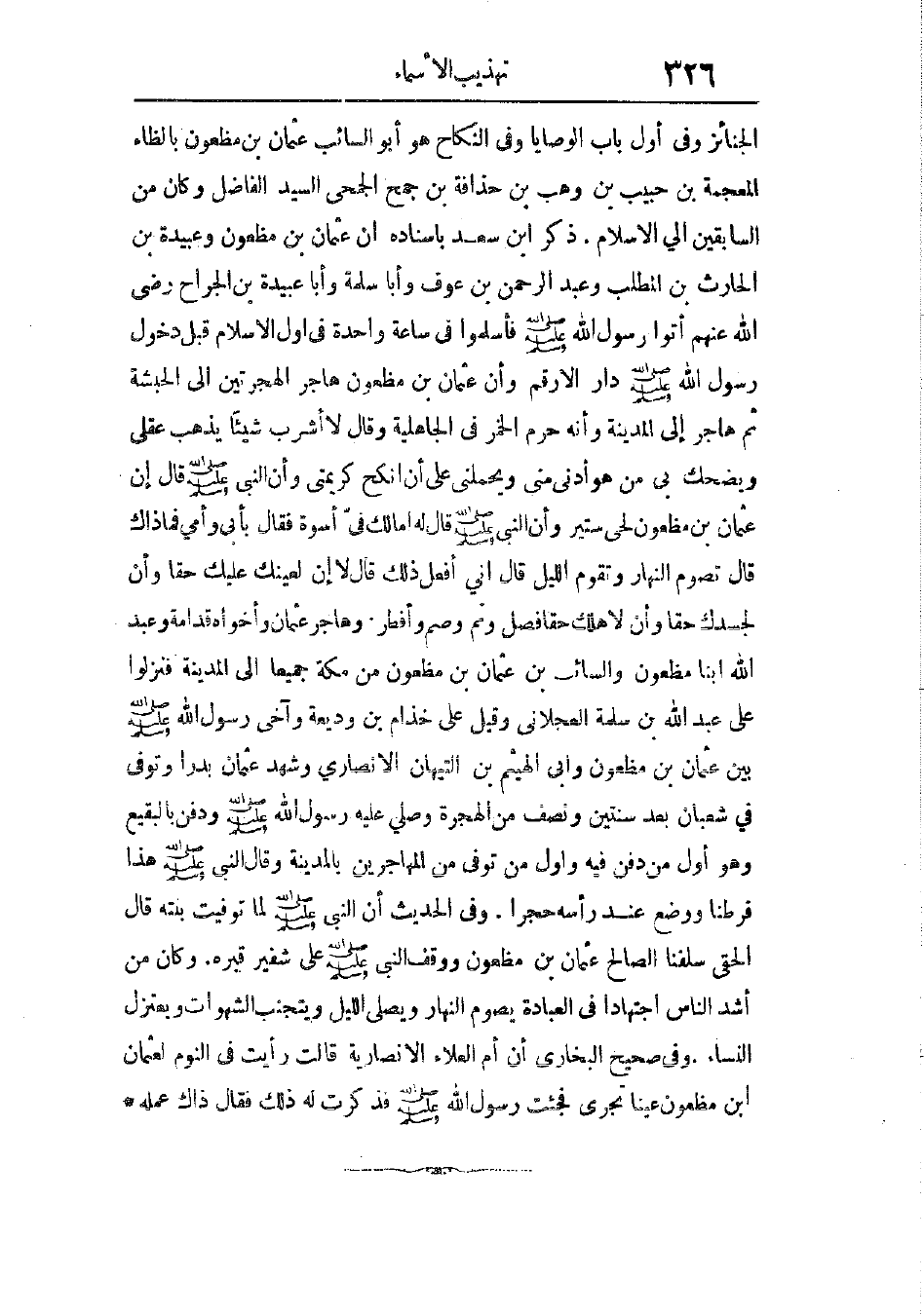 ذكر ابن سعد بإسناده أن عثمان بن مظعون، وعبيدة بن الحارث بن المطلب، وعبد الرحمن بن عوف، وأبا سلمة، وأبا عبيدة بن الجراح، رضى الله عنهم، أتوا رسول الله - صَلَّى اللهُ عَلَيْهِ وَسَلَّمَ - فأسلموا فى ساعة واحدة فى أول الإسلام قبل دخول رسول الله - صَلَّى اللهُ عَلَيْهِ وَسَلَّمَ - دار الأرقم، وأن عثمان بن مظعون هاجر الهجرتين إلى الحبشة، ثم هاجر إلى المدينة، وأنه حرَّم الخمر فى الجاهلية، وقال: لا أشرب شيئًا يُذهب عقلى ويُضحك بى مَن هو أدنى منى، ويحملنى على أن أنكح كريمتى، وأن النبى - صَلَّى اللهُ عَلَيْهِ وَسَلَّمَ - قال: “إن عثمان بن مظعون لحى ستير” (¬1) ، وأن النبى - صَلَّى اللهُ عَلَيْهِ وَسَلَّمَ - قال له: “أما لك فىّ أسوة؟ ” (¬2) ، فقال: بأبى وأمى، فما ذاك؟ قال: “تصوم النهار وتقوم الليل”، قال: إنى أفعل ذلك، قال: “لا إن لعينك عليك حقًا، وإن لجسدك حقًا، وإن لأهلك حقًا، فصل ونم، وصم وأفطر” (¬3) .