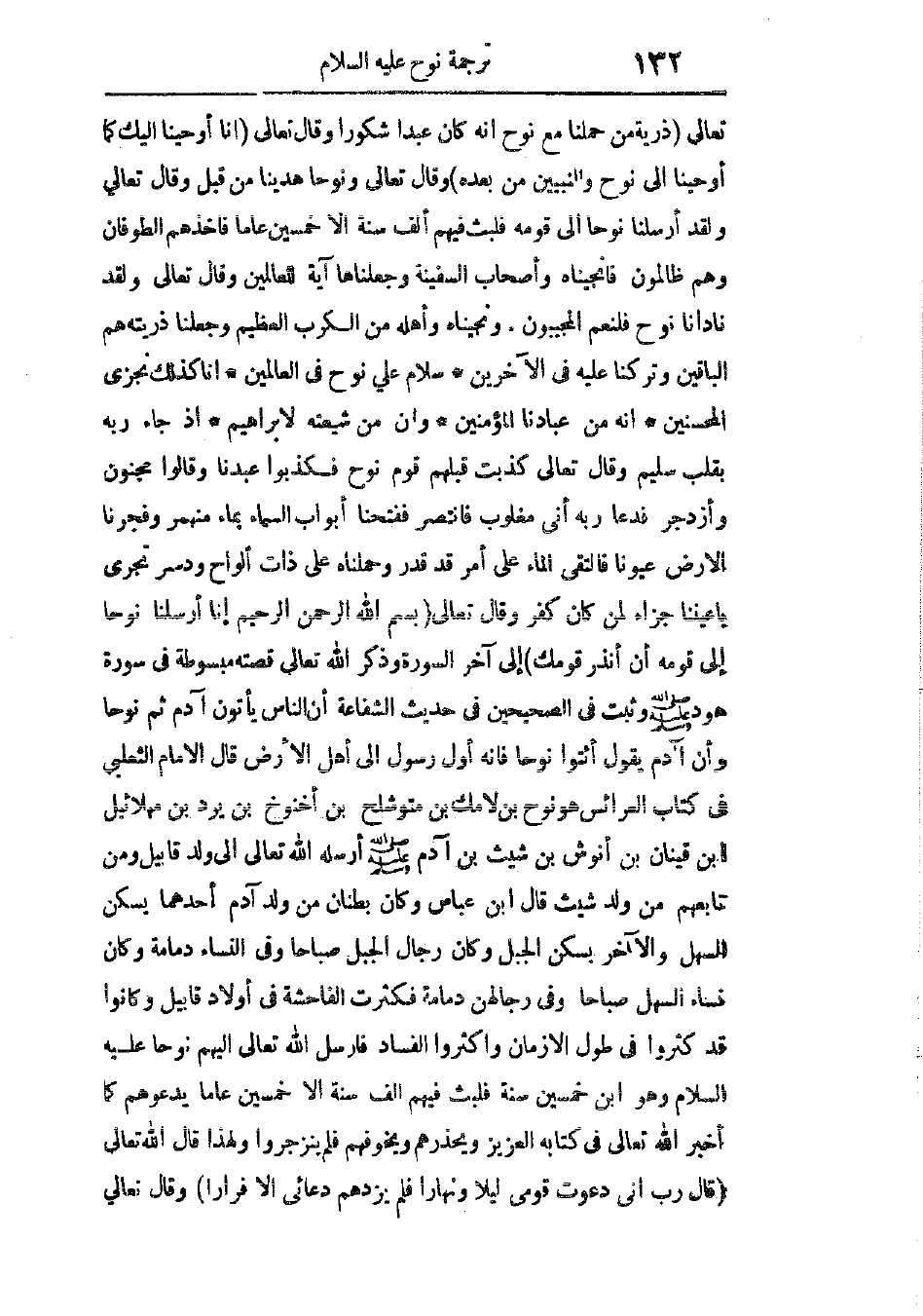 وقال تعالى: {بِسْمِ اللهِ الرَّحْمنِ الرَّحِيمِ إِنَّا أَرْسَلْنَا نُوحًا إِلَى قَوْمِهِ أَنْ أَنذِرْ قَوْمَكَ} [نوح: 1] إلى آخر السورة. وذكر الله تعالى قصته مبسوطة فى سورة هود، عليه السلام.