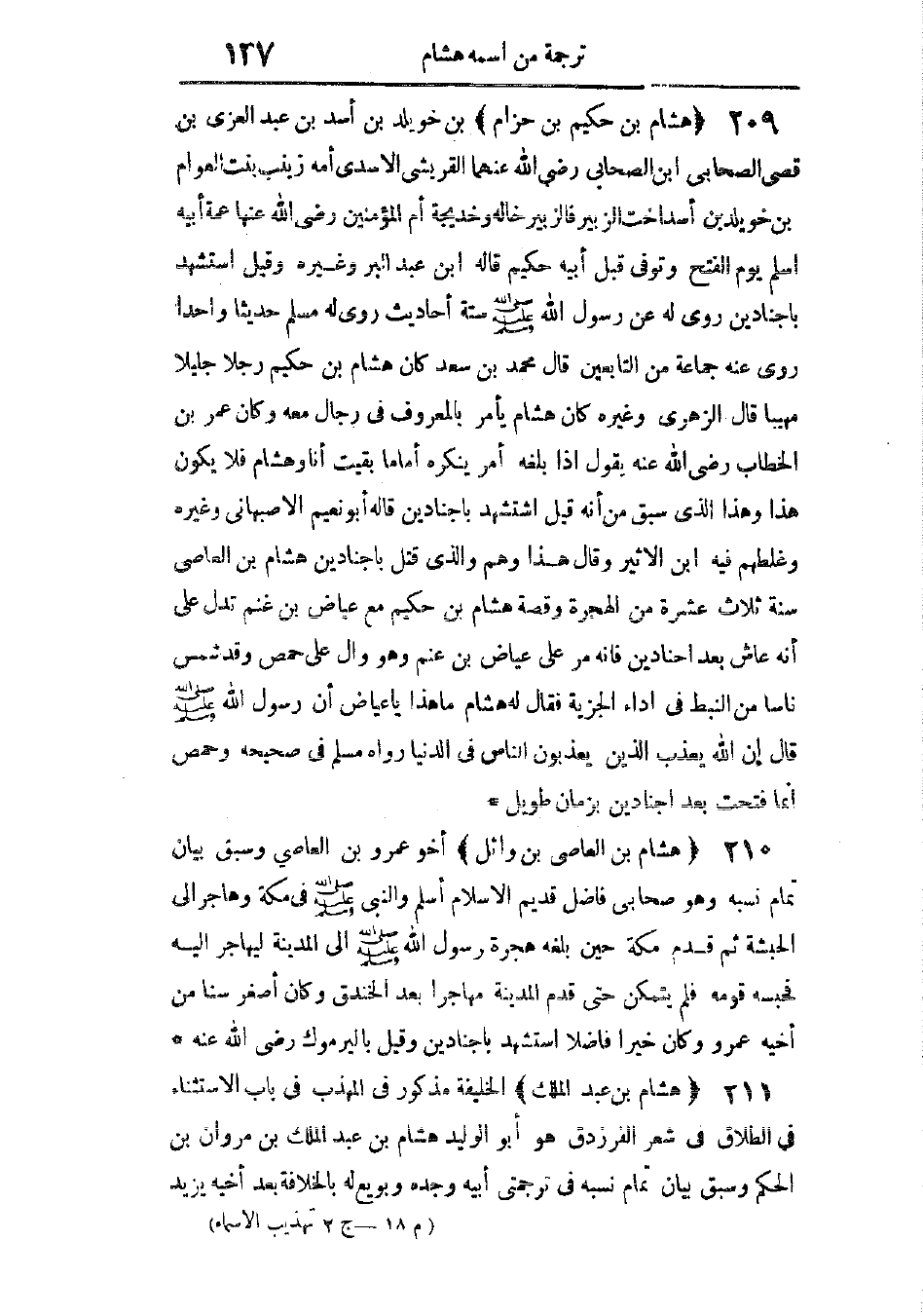 التابعى المشهور، أحد الفقهاء السبعة، تكرر فى المختصر، وذكره فى أول باب الوصية، وفى أواخر الولاء فى الخيار فى النكاح فى تخيير المعتقة، وهو أبو المنذر هشام ابن عروة بن الزبير بن العوام القريشى الأسدى المدنى، سبق تمام نسبه فى ترجمة أبيه وجده، وهو تابعى. رأى عبد الله بن عمر بن الخطاب، ومسح رأسه ودعا له، وجابر بن عبد الله، وسهل بن سعد، وأنس بن مالك، وسمع عمه عبد الله بن الزبير، وأباه عروة، وخلائق من أئمة التابعين.
