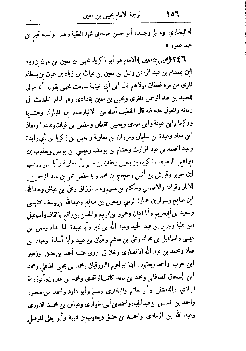 هو أبو زكريا يحيى بن معين بن عون بن زياد بن بسطام بن عبد الرحمن، وقيل: ابن معين بن غياث بن زياد بن عون بن بسطام المرى من مرة غطفان مولاهم. قال ابن أبى خيثمة: سمعت يحيى يقول: أنا مولى للجنيد بن عبد الرحمن المقرى، ويحيى بن معين بغدادى، وهو إمام الحديث فى زمانه والمعول عليه فيه. قال الخطيب: أصله من الأنبار.