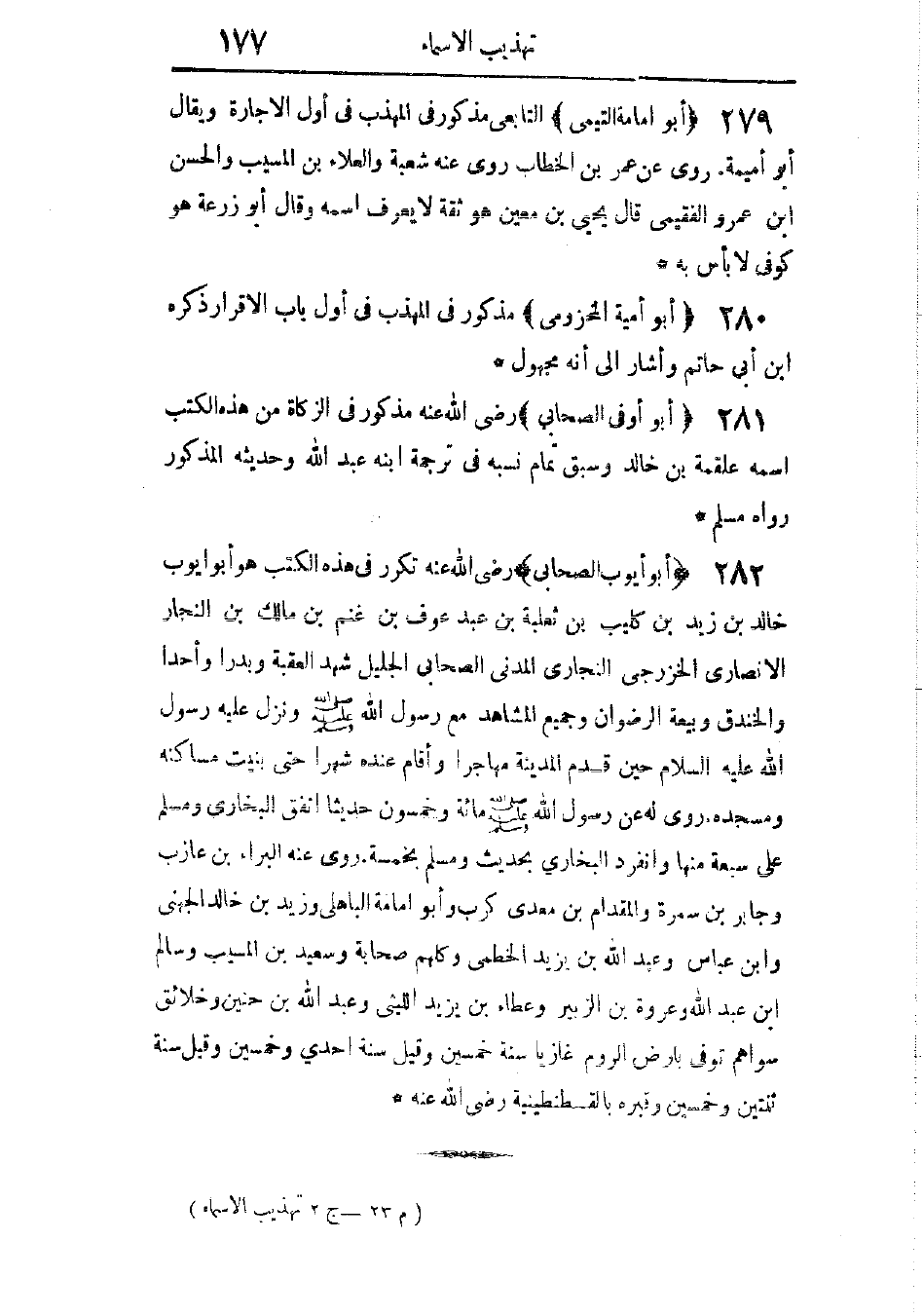 تكرر فى هذه الكُتب. هو أبو أيوب خالد بن زيد بن كليب بن ثعلبة بن عبد عوف ابن غنم بن مالك بن النجار الأنصارى الخزرجى النجارى المدنى الصحابى الجليل. شهد العقبة، وبدرًا، وأُحُدًا، والخندق، وبيعة الرضوان، وجميع المشاهد مع رسول الله - صَلَّى اللهُ عَلَيْهِ وَسَلَّمَ -، ونزل عليه رسول الله - صَلَّى اللهُ عَلَيْهِ وَسَلَّمَ - حين قدم المدينة مهاجرًا، وأقام عنده شهرًا حتى بنيت مساكنه ومسجده.