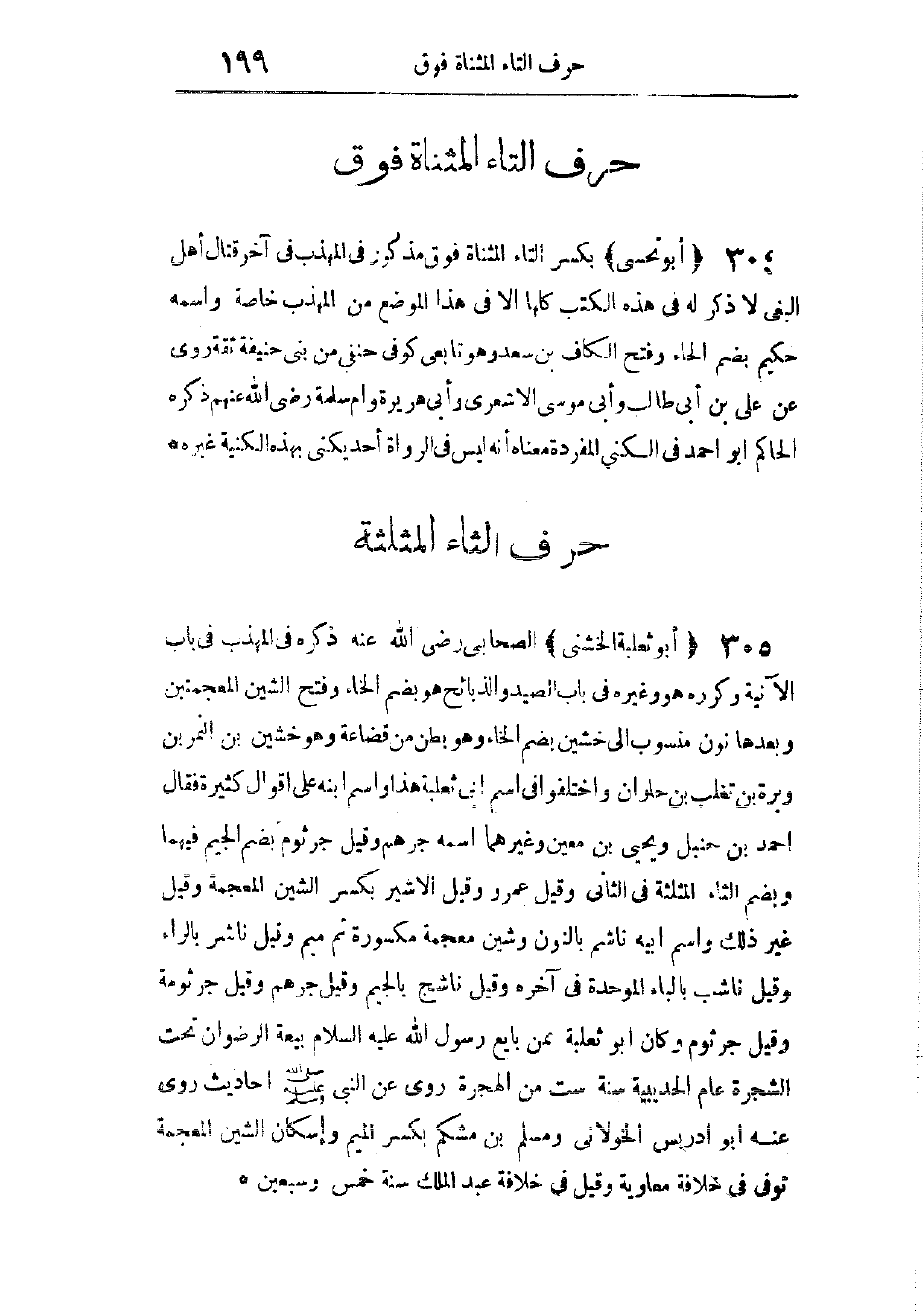 بكسر التاء المثناة فوق، مذكور فى المهذب فى آخر قتال أهل البغى، لا ذكر له فى هذه الكُتب كلها إلا فى هذا الموضع من المهذب خاصة، واسمه حُكيم، بضم الحاء وفتح الكاف، ابن سعد، وهو تابعى كوفى حنفى، من بنى حنيفة، ثقة. روى عن على بن أبى طالب، وأبى موسى الأشعرى، وأبى هريرة، وأم سلمة، رضى الله عنهم. ذكره الحاكم أبو أحمد فى الكنى المفردة، معناه أنه ليس فى الرواة أحد يكنى بهذه الكنية غيره.