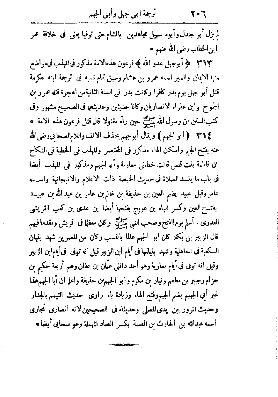واعلم أن أبا الجهم هذا غير أبى الجهيم، بضم الجيم وفتح الهاء وزيادة ياء، راوى حديث التيمم بالجدار، وحديث المرور بين يدى المصلى، وحديثاه فى الصحيحين؛ لأنه أنصارى نجارى، اسمه عبد الله بن الحارث بن الصمة، بكسر الصاد المهملة، وهو صحابى أيضًا.