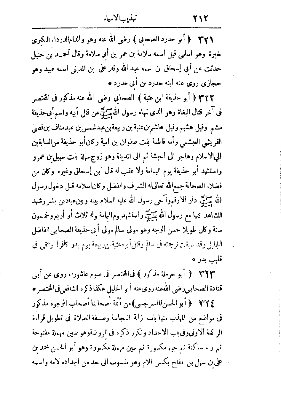 مذكور فى المختصر فى آخر قتال البغاة، وهو الذى نهاه رسول الله - صَلَّى اللهُ عَلَيْهِ وَسَلَّمَ - عن قتل أبيه، واسم أبى حذيفة مشم، وقيل: هشيم، وقيل: هاشم بن عتبة بن ربيعة بن عبد شمس بن عبد مناف بن قصى القريشى العبشمى، وأمه فاطمة بنت صفوان بن أمية، وكان أبو حذيفة من السابقين إلى الإسلام، وهاجر إلى الحبشة، ثم إلى المدينة، وهو زوج سهلة بنت سهيل بن عمرو، واستشهد أبو حذيفة يوم اليمامة، ولا عقب له.