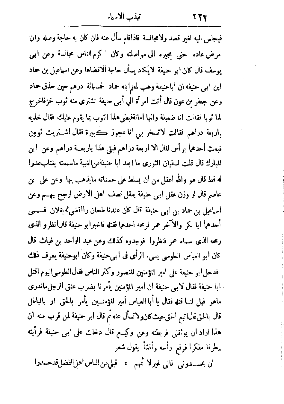 وعن وكيع، قال: دخلت على أبى حنيفة، فرأيته مطرقًا مفكرًا، فرفع رأسه وأنشأ يقول شعر: