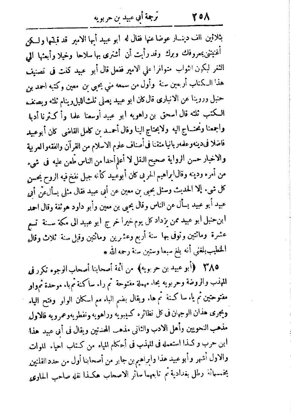 ويقال فى أبى عبيد هذا: ابن حرب، وكذا استعمله فى المهذب فى أحكام المياه من كتاب إحياء الموات، والأول أشهر، وأبو عبيد هذا وإبراهيم بن جابر من أصحابنا أول من حدد القلتين بخمسمائة رطل بغدادية، ثم تابعهما سائر الأصحاب، هكذا نقله صاحب الحاوى.