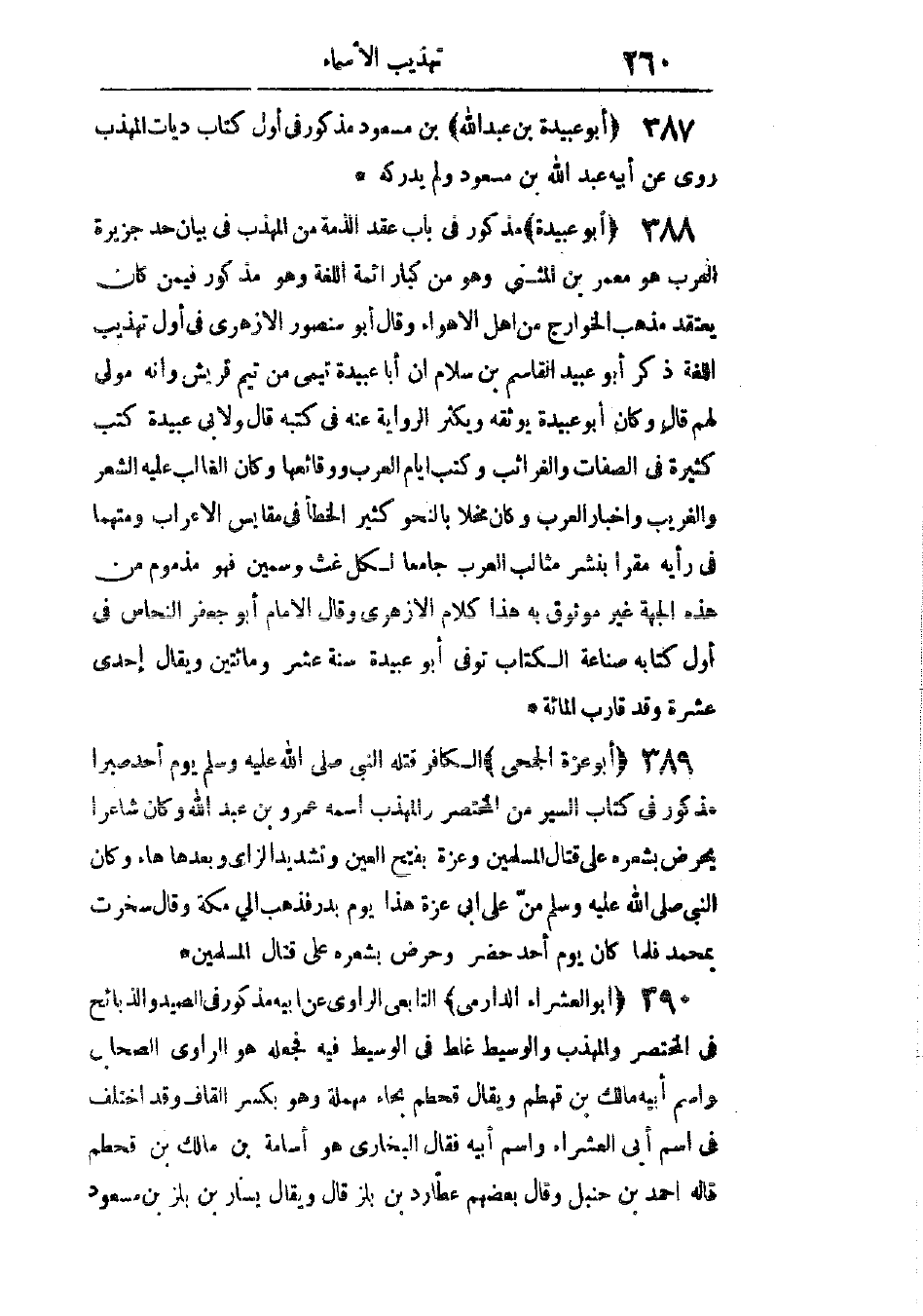 مذكور فى باب عقد الذمة من المهذب فى بيان حد جزيرة العرب. هو معمر بن المثنى، وهو من كبار أئمة اللغة، وهو مذكور فيمن كان يعتقد مذهب الخوارج من أهل الأهواء. وقال أبو منصور الأزهرى فى أول تهذيب اللغة: ذكر أبو عبيد القاسم بن سلام أن أبا عبيدة تيمى من تيم قريش، وأنه مولى لهم. قال: وكان أبو عبيدة يوثقه ويكثر الرواية عنه فى كتبه.