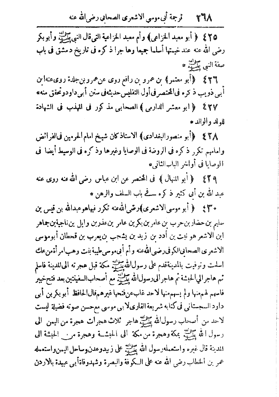 تكرر فيها. هو عبد الله بن قيس بن سليم بن حضار بن حرب بن عامر بن بكر بن عامر بن عذر بن وايل بن ناجية بن جماهر بن الأشعر، هو نبت بن أدد بن زيد بن يشجب بن يعرب بن قحطان، أبو موسى الأشعرى الصحابى الكوفى، رضى الله عنه. وأم أبى موسى طيبة بنت وهب، امرأة من عك، أسلمت وتوفيت بالمدينة.