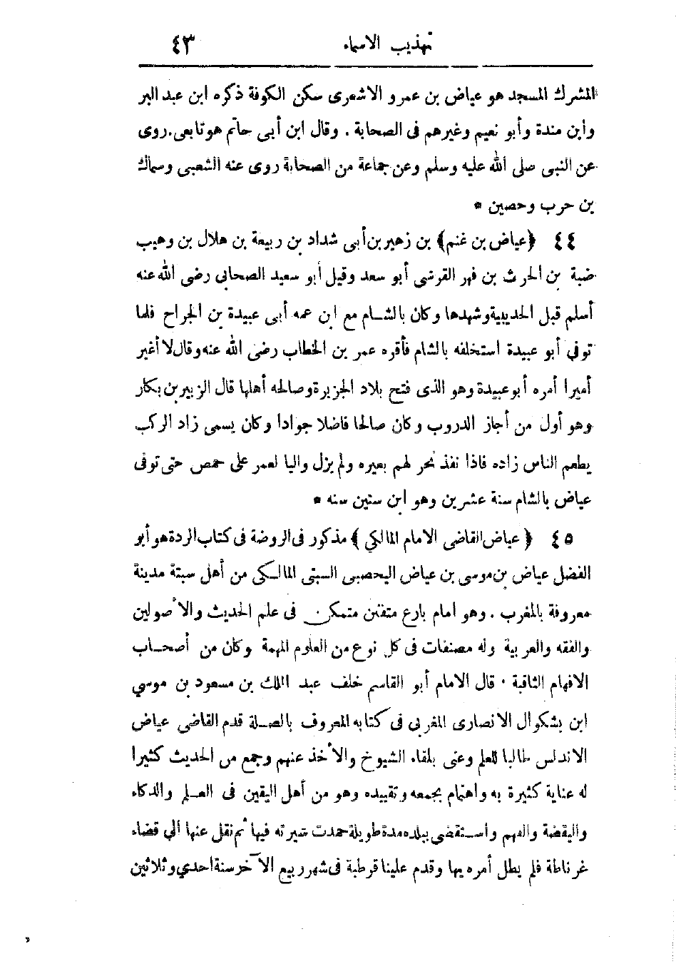 مذكور فى الروضة فى كتاب الردة. هو أبو الفضل عياض بن موسى بن عياض اليحصبى السبتى المالكى، من أهل سبتة مدينة معروفة بالمغرب، وهو إمام بارع، متفنن، متمكن فى علم الحديث والأصولين، والفقه، والعربية، وله مصنفات فى كل نوع من العلوم المهمة، وكان من أصحاب الأفهام الثاقبة.