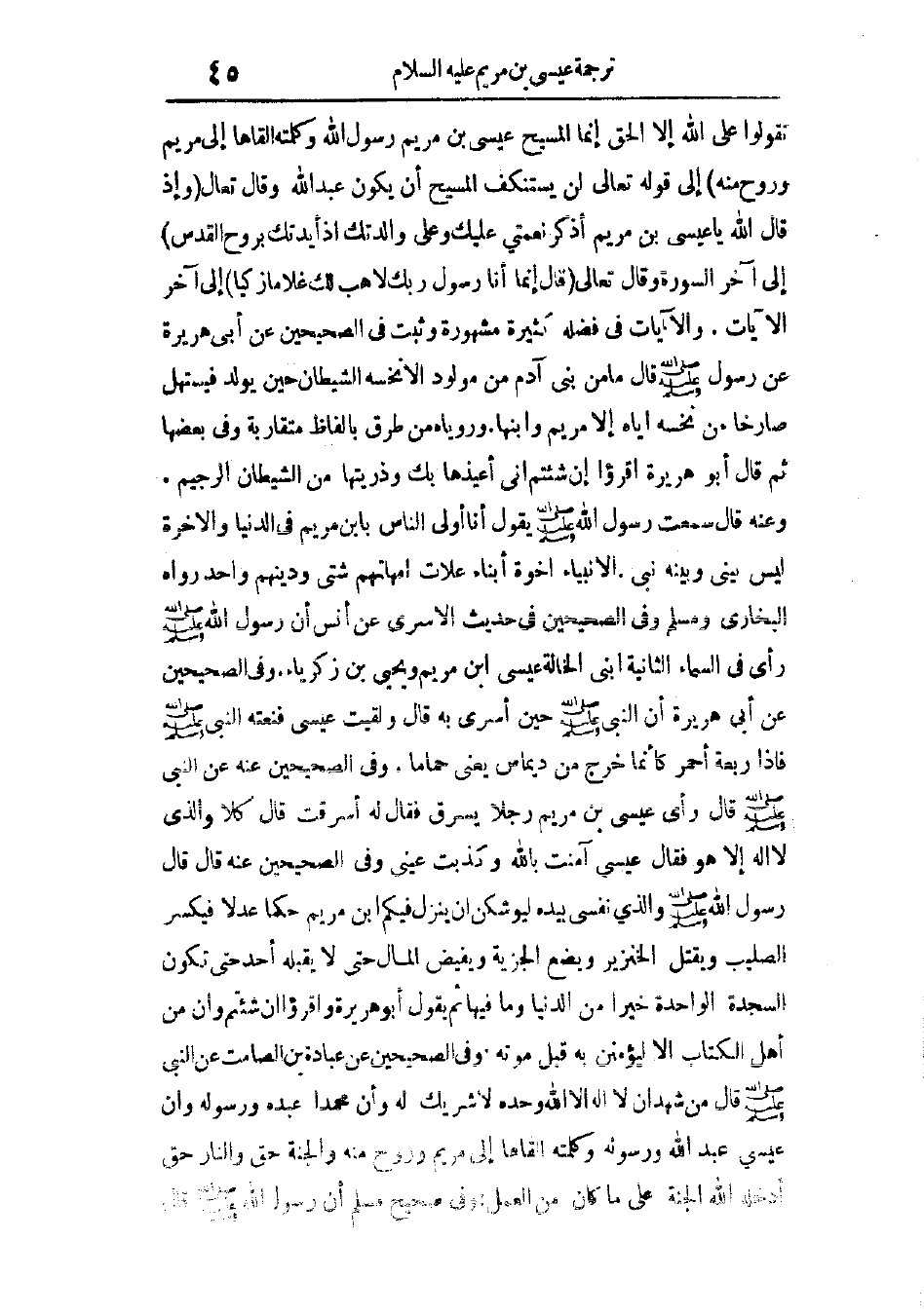 تَقُولُوا عَلَى اللهِ إِلاَّ الْحَقِّ إِنَّمَا الْمَسِيحُ عِيسَى ابْنُ مَرْيَمَ رَسُولُ اللهِ وَكَلِمَتُهُ أَلْقَاهَا إِلَى مَرْيَمَ وَرُوحٌ مِّنْهُ} إلى قوله تعالى: {لَّن يَسْتَنكِفَ الْمَسِيحُ أَن يَكُونَ عَبْدًا لِّلّهِ} [النساء: 171، 172] .