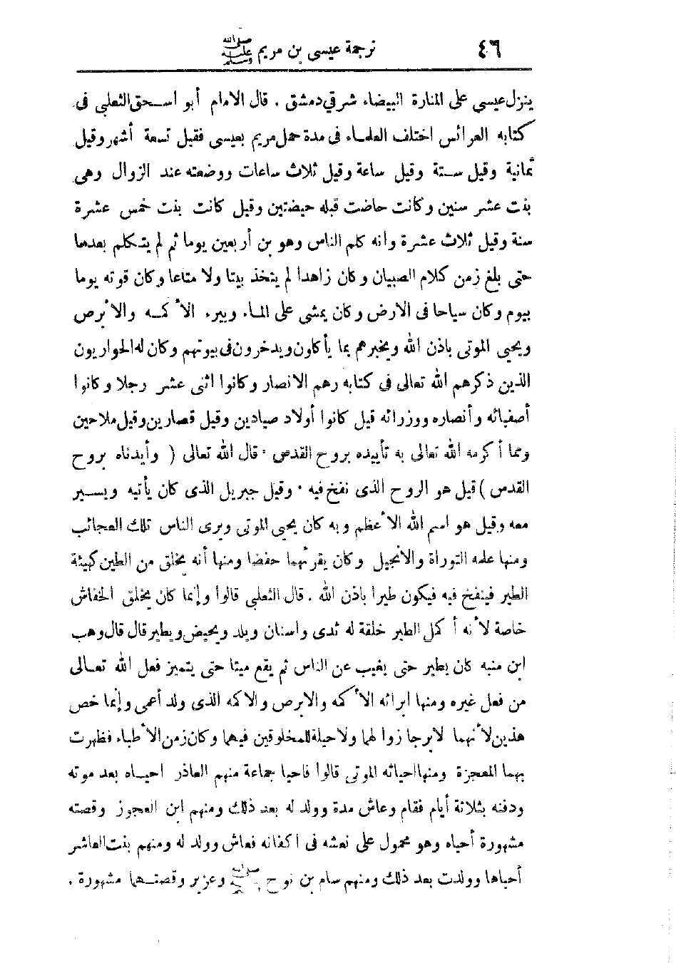 قال الثعلبى: قالوا: وإنما كان يخلق الخفاش خاصة؛ لأنه أكمل الطير خلقة، له ثدى، وأسنان، ويلد، ويحيض، ويطير. قال: وقال وهب بن منبه: كان يطير حتى يغيب عن الناس، ثم يقع ميتًا حتى يتميز فعل الله تعالى من فعل غيره. ومنها إبرائه الأكمه والأبرص، والأكمه الذى ولد أعمى، وإنما خص هذين لأنهما لا يرجا زوالهما، ولا حيلة للمخلوقين فيهما، وكان زمن الأطباء، فظهرت بهما المعجزة.