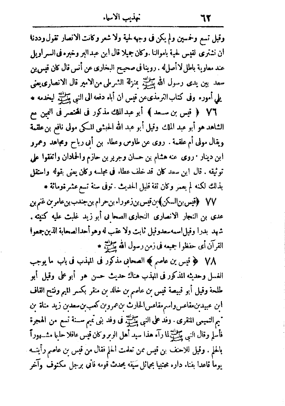 مذكور فى المهذب فى باب ما يوجب الغسل، وحديثه المذكور فى المهذب هناك حديث حسن، هو أبو على، وقيل: أبو طلحة، وقيل: أبو قبيصة قيس بن عاصم بن خالد بن منقر، بكسر الميم وفتح القاف، ابن عبيد بن مقاعس، واسم مقاعس الحارث ابن عمرو بن كعب بن سعد بن زيد مناة بن تيم التميمى المنقرى.