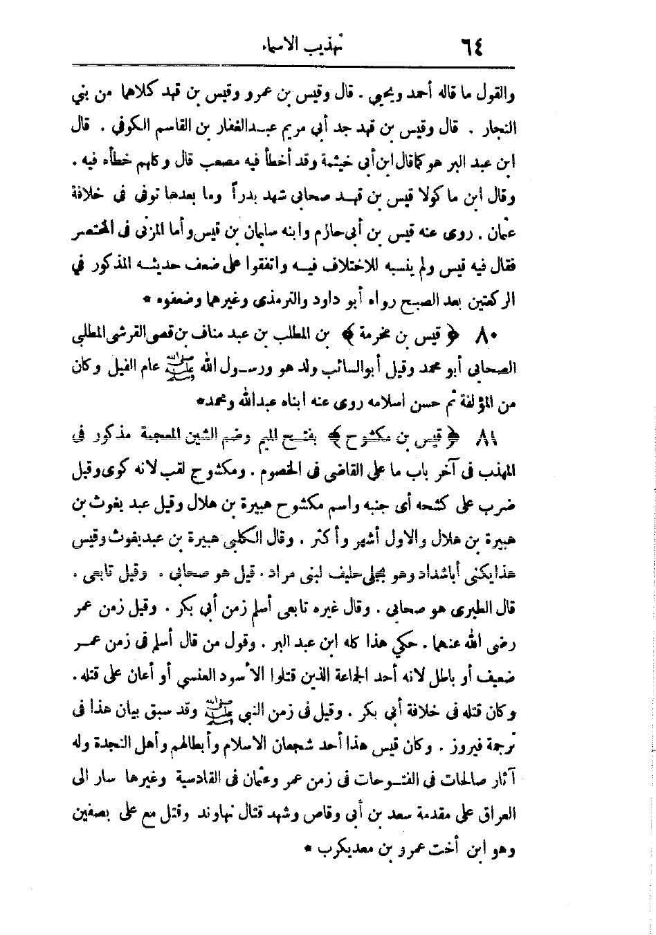 قال: وقيس بن عمرو، وقيس بن قهد كلاهما من بنى النجار. قال: وقيس بن قهد جد أبى مريم عبد الغفار بن القاسم الكوفى. قال ابن عبد البر: هو كما قال ابن أبى خيثمة، وقد أخطأ فيه مصعب، قال: وكلهم خطأه فيه. وقال ابن ماكولا: قيس بن قهد صحابى شهد بدرًا وما بعدها، توفى فى خلافة عثمان.