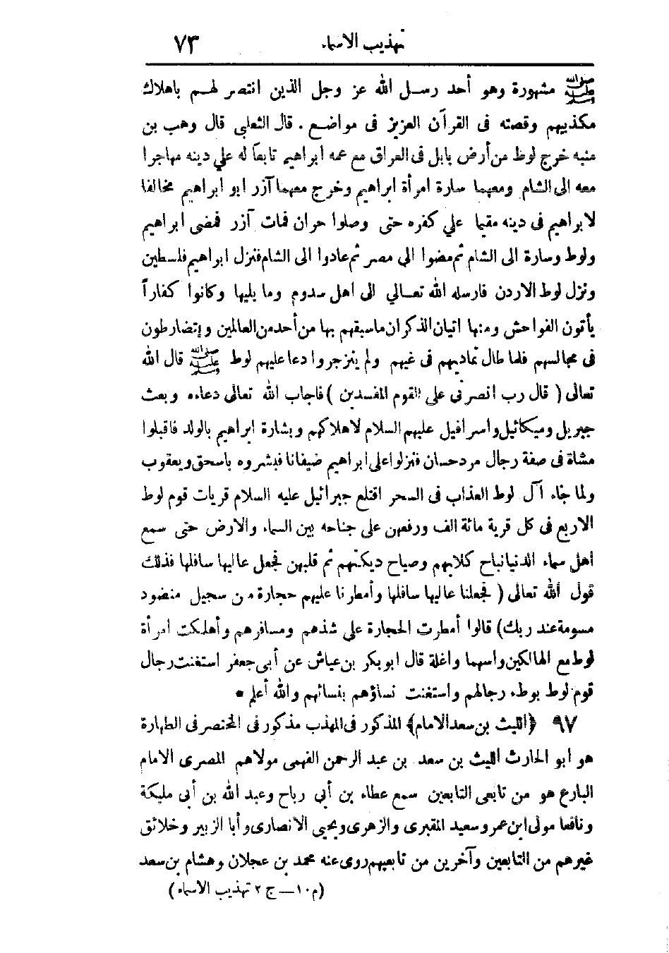 المذكور فى المهذب، مذكور فى المختصر فى الطهارة. هو أبو الحارث الليث بن سعد ابن عبد الرحمن الفهمى، مولاهم المصرى الإمام البارع، هو من تابعى التابعين. سمع عطاء بن أبى رباح، وعبد الله بن أبى مليكة، ونافعًا مولى ابن عمر، وسعيد المقبرى، والزهرى، ويحيى الأنصارى، وأبا الزبير، وخلائق غيرهم من التابعين، وآخرين من تابعيهم.