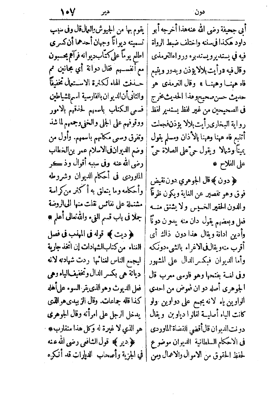 دون: قال الجوهري: دون نقيض فوق، وهو تقصير عن الغاية، ويكون ظرفًا، والدون الحقير الخسيس، ولا يشتق منه فعل، وبعضهم يقول: دان منه يدون دونا، وأدين إدانة، ويقال: هذا دون ذاك أي: أقرب منه، ويقال في الإغراء بالشيء دونكه، وأما الديوان فبكسر الدال على المشهور، وفي لغة بفتحها، وهو فارسي معرب.