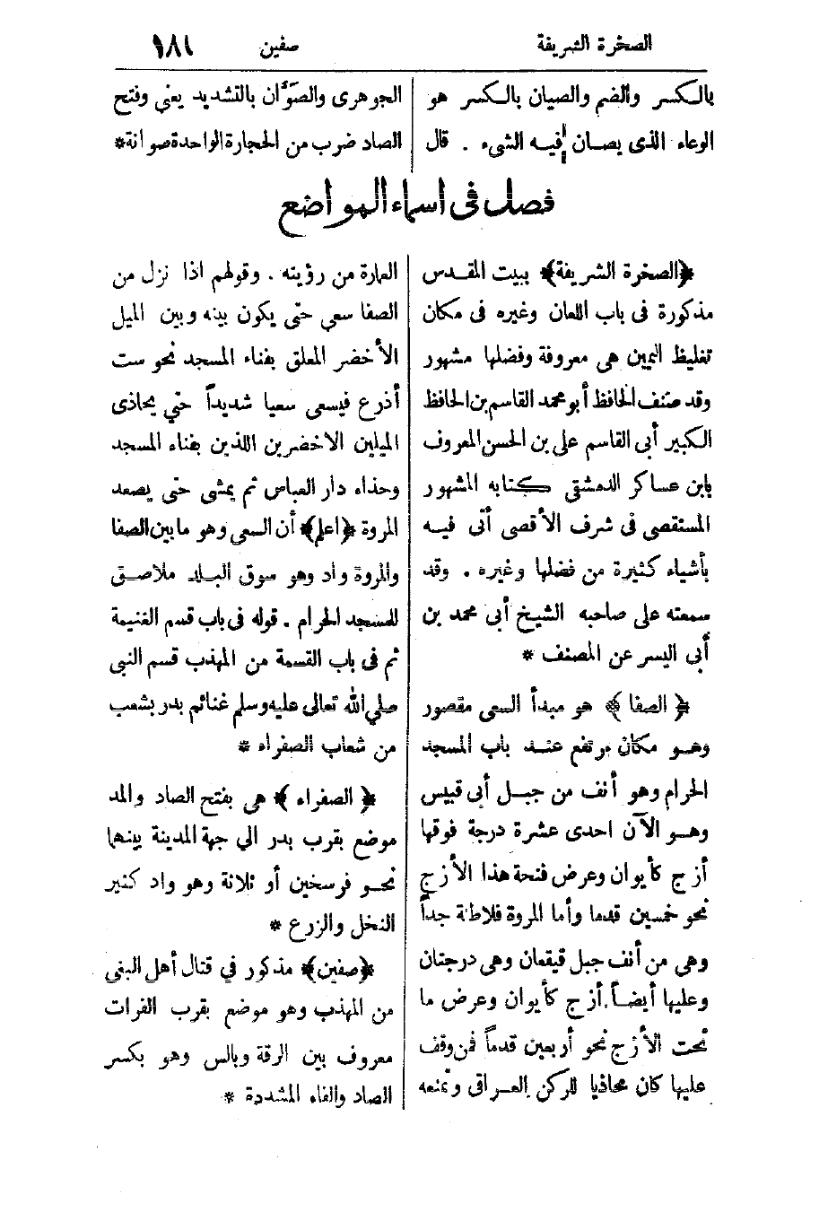 فصل في أسماء المواضع