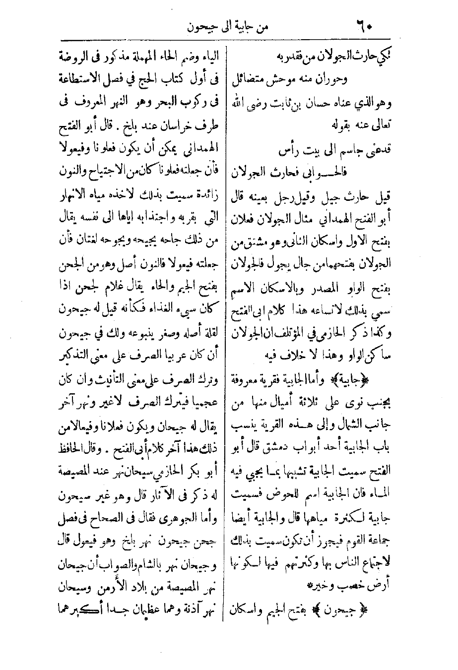 قد عنى جاسم إلى بيت رأس ... فالحوابي فحارث الجولان
