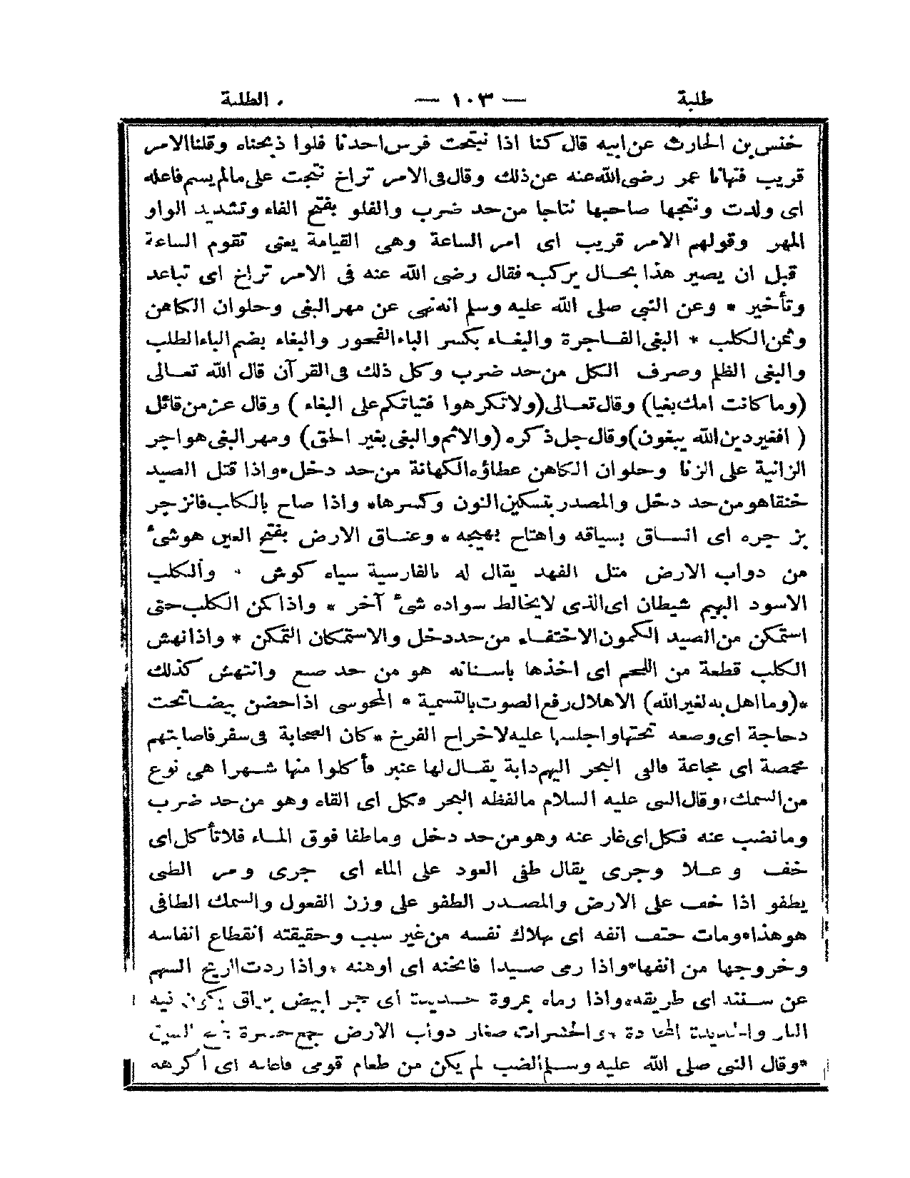 خَنَسِ بْنِ الْحَارِثِ عَنْ أَبِيهِ قَالَ كُنَّا إذَا نُتِجَتْ فَرَسُ أَحَدِنَا فَلُوًّا ذَبَحْنَاهُ وَقُلْنَا الْأَمْرُ قَرِيبٌ فَنَهَانَا عُمَرُ - رَضِيَ اللَّهُ عَنْهُ - عَنْ ذَلِكَ وَقَالَ فِي الْأَمْرِ تَرَاخٍ نُتِجَتْ عَلَى مَا لَمْ يُسَمَّ فَاعِلُهُ أَيْ وَلَدَتْ وَنَتَجَهَا صَاحِبُهَا نَتَاجًا مِنْ حَدِّ ضَرَبَ وَالْفَلُوُّ بِفَتْحِ الْفَاءِ وَتَشْدِيدِ الْوَاوِ الْمُهْرُ وَقَوْلُهُمْ الْأَمْرُ قَرِيبٌ أَيْ أَمْرُ السَّاعَةِ وَهِيَ الْقِيَامَةُ يَعْنِي تَقُومُ السَّاعَةُ قَبْلَ أَنْ يَصِيرَ هَذَا بِحَالٍ يُرْكَبُ فَقَالَ - رَضِيَ اللَّهُ عَنْهُ - فِي الْأَمْرِ تَرَاخٍ أَيْ تَبَاعُدٌ وَتَأْخِيرٌ.
