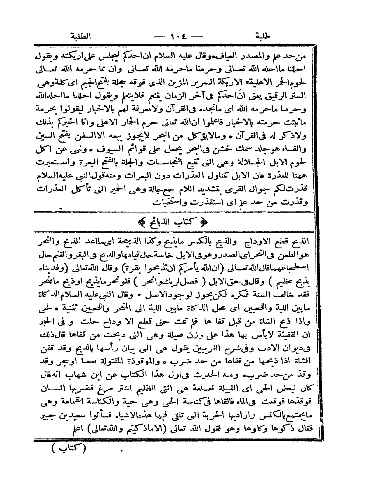 (ذ ب ح) : الذَّبْحُ قَطْعُ الْأَوْدَاجِ وَالذِّبْحُ بِالْكَسْرِ مَا يُذْبَحُ وَكَذَا الذَّبِيحَةُ أَيْ مَا أُعِدَّ لِلذَّبْحِ وَالنَّحْرُ هُوَ الطَّعْنُ فِي النَّحْرِ أَيْ الصَّدْرِ وَهُوَ فِي الْإِبِلِ خَاصَّةً حَالَ قِيَامِهَا وَالذَّبْحُ فِي الْبَقَرِ وَالْغَنَمِ حَالَ اضْطِجَاعِهِمَا قَالَ اللَّهُ تَعَالَى {إنَّ اللَّهَ يَأْمُرُكُمْ أَنْ تَذْبَحُوا بَقَرَةً} [البقرة: 67] وَقَالَ اللَّهُ تَعَالَى {وَفَدَيْنَاهُ بِذِبْحٍ عَظِيمٍ} [الصافات: 107] وَقَالَ فِي حَقِّ الْإِبِلِ {فَصَلِّ لِرَبِّك وَانْحَرْ} [الكوثر: 2] فَلَوْ نَحَرَ مَا يُذْبَحُ أَوْ ذَبَحَ مَا يُنْحَرُ فَقَدْ خَالَفَ السُّنَّةَ فَيُكْرَهُ لَكِنْ يَجُوزُ لِوُجُودِ الْأَصْلِ.
