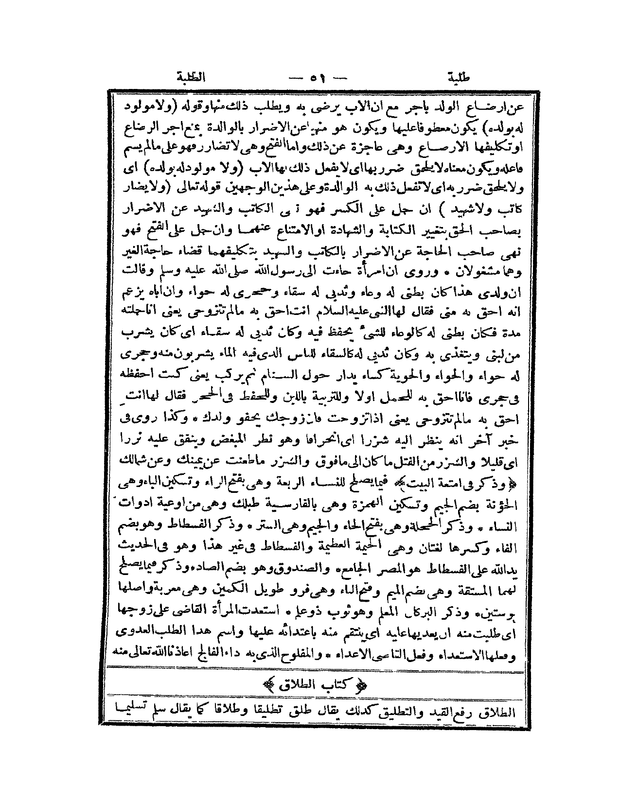(ط ل ق) : الطَّلَاقُ رَفْعُ الْقَيْدِ وَالتَّطْلِيقُ كَذَلِكَ يُقَالُ طَلَّقَ تَطْلِيقًا وَطَلَاقًا كَمَا يُقَالُ سَلَّمَ تَسْلِيمًا