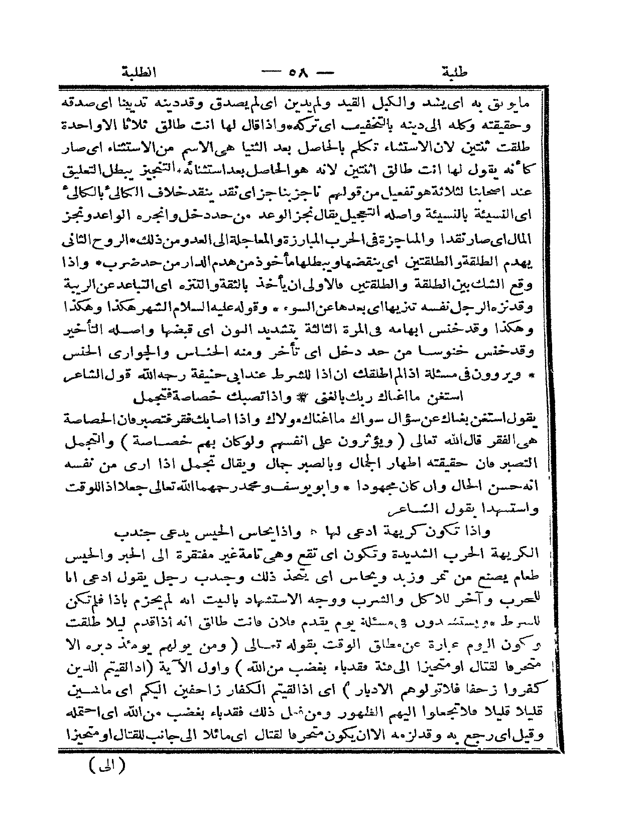 مَا يُوثَقُ بِهِ أَيْ يُشَدُّ وَالْكَبْلُ الْقَيْدُ وَلَمْ يُدَيَّنْ أَيْ لَمْ يُصَدَّقْ وَقَدْ دَيَّنَهُ تَدْيِينًا أَيْ صَدَّقَهُ وَحَقِيقَتُهُ وَكَلَهُ إلَى دِينِهِ بِالتَّخْفِيفِ أَيْ تَرَكَهُ وَإِذَا قَالَ لَهَا أَنْتِ طَالِقٌ ثَلَاثًا إلَّا وَاحِدَةً طَلُقَتْ ثِنْتَيْنِ لِأَنَّ الِاسْتِثْنَاءَ تَكَلُّمٌ بِالْحَاصِلِ بَعْدَ الثُّنْيَا هِيَ الِاسْمُ مِنْ الِاسْتِثْنَاءِ أَيْ صَارَ كَأَنَّهُ يَقُولُ لَهَا أَنْتِ طَالِقٌ اثْنَتَيْنِ لِأَنَّهُ هُوَ الْحَاصِلُ بَعْدَ اسْتِثْنَائِهِ.