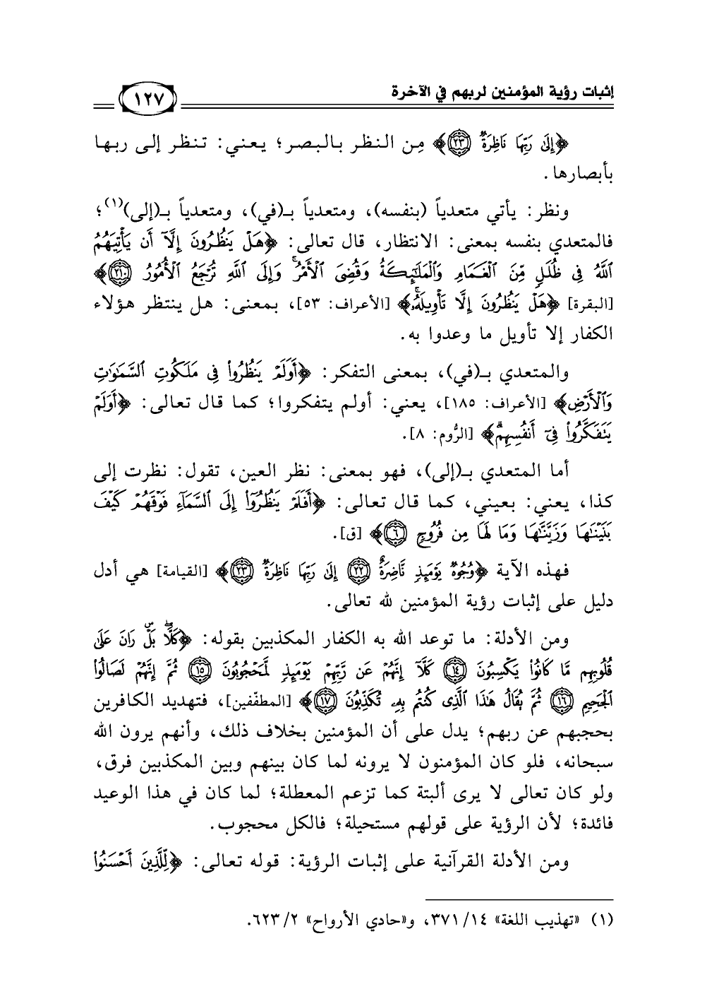ومن الأدلة القرآنية على إثبات الرؤية قوله تعالى {لِلَّذِينَ أَحْسَنُوا