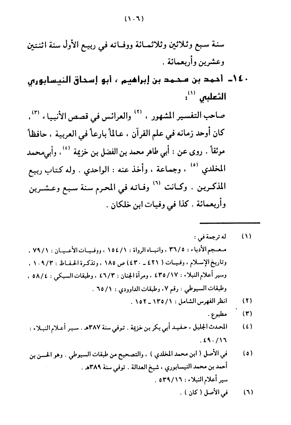 140 - أَحْمد بن مُحَمَّد بن إِبْرَاهِيم أَو إِسْحَاق النَّيْسَابُورِي الثَّعْلَبِيّ
