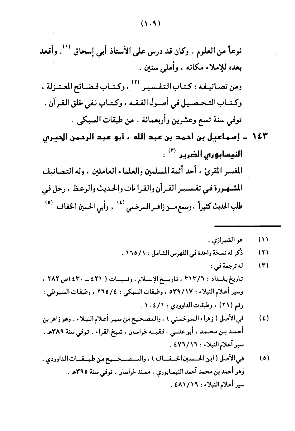 143 - إِسْمَاعِيل بن أَحْمد بن عبد الله أَبُو عبد الرَّحْمَن الْحِيرِي النَّيْسَابُورِي الضَّرِير
