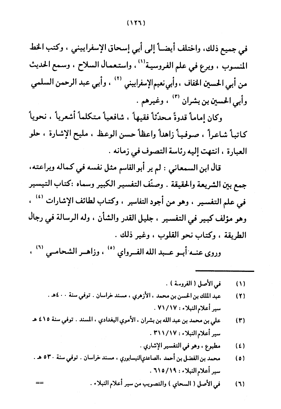 وصنف التَّفْسِير الْكَبِير وَسَماهُ كتاب التَّيْسِير فِي علم التَّفْسِير وَهُوَ من أَجود التفاسير وَكتاب لطائف الإشارات وَهُوَ مؤلف كَبِير فِي التَّفْسِير جليل الْقدر والشأن وَله الرسَالَة فِي رجال الطَّرِيقَة وَكتاب نَحْو الْقُلُوب وَغير ذَلِك