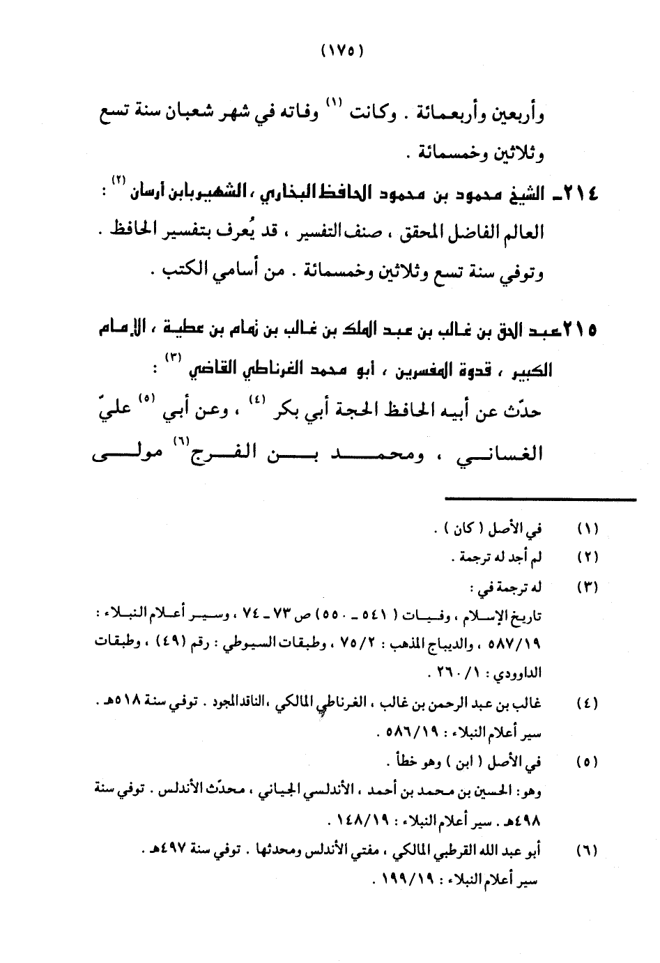 215 - عبد الْحق بن غَالب بن عبد الْملك بن غَالب بن تَمام بن عَطِيَّة الإِمَام الْكَبِير قدوة الْمُفَسّرين أَبُو مُحَمَّد الغرناطي القَاضِي