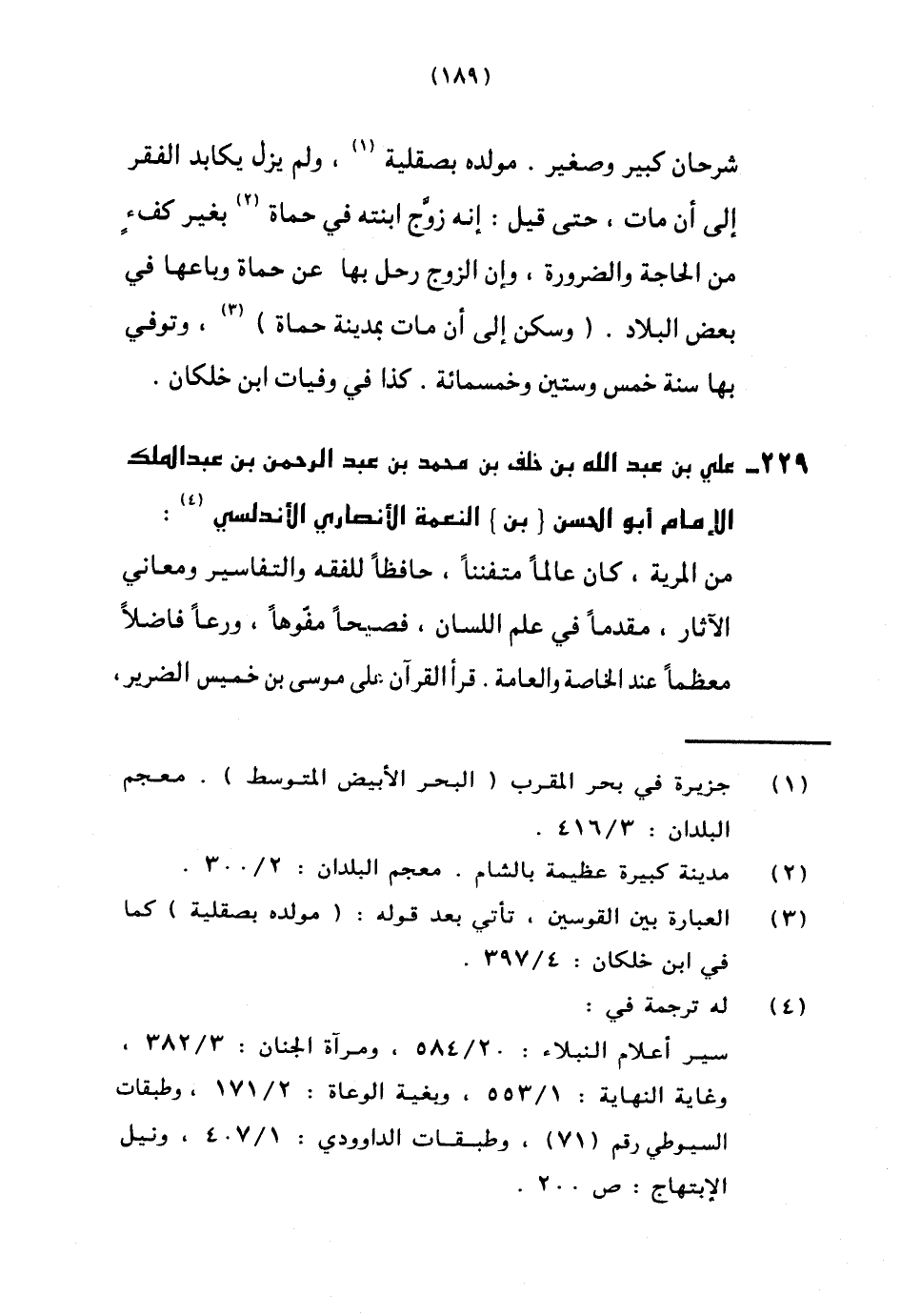 229 - عَليّ بن عبد الله بن خلف بن مُحَمَّد بن عبد الرَّحْمَن بن عبد الْملك الإِمَام أَبُو الْحسن بن النِّعْمَة الْأنْصَارِيّ الأندلسي