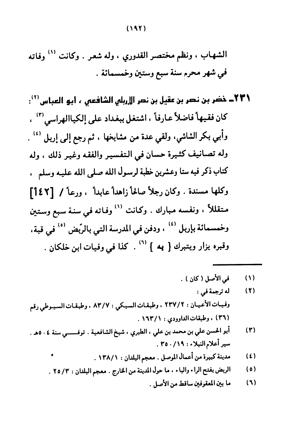 231 - خضر بن نصر بن عقيل بن نصر الإربلي الشَّافِعِي أَبُو الْعَبَّاس