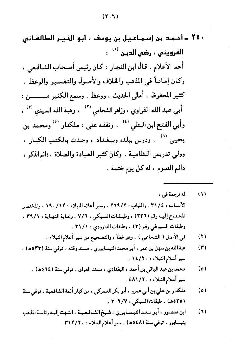 250 - أَحْمد بن إِسْمَاعِيل بن يُوسُف أَبُو الْخَيْر الطَّالقَانِي الْقزْوِينِي رَضِي الدّين