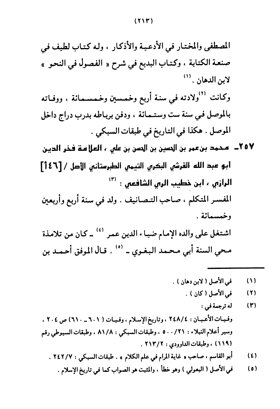 257 - مُحَمَّد بن عمر بن الْحُسَيْن بن الْحسن بن عَليّ الْعَلامَة فَخر الدّين أَبُو عبد الله الْقرشِي الْبكْرِيّ التَّيْمِيّ الطبرستاني الأَصْل [46 أ] الرَّازِيّ ابْن خطيب الرّيّ الشَّافِعِي