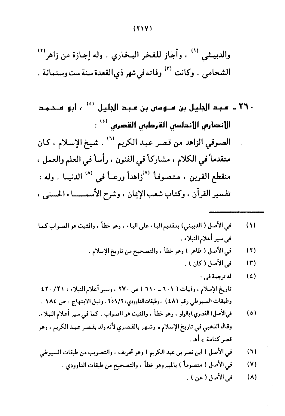 260 - عبد الْجَلِيل بن مُوسَى بن عبد الْجَلِيل أَبُو مُحَمَّد الْأنْصَارِيّ الأندلسي الْقُرْطُبِيّ القصري