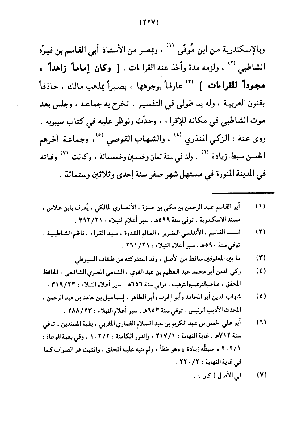 وَكَانَ إِمَامًا زاهدا مجودا للقراءات عَارِفًا بوجوهها بَصيرًا بِمذهب مَالك حاذقا بفنون الْعَرَبيَّة وَله يَد طولى فِي التَّفْسِير