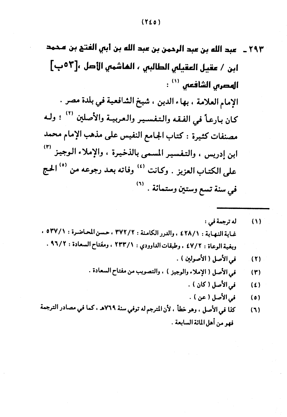 293 - عبد الله بن عبد الرَّحْمَن بن عبد الله بن أبي الْفَتْح بن مُحَمَّد ابْن عقيل الْعقيلِيّ الطَّالِبِيُّ الْهَاشِمِي الأَصْل [53 ب] الْمصْرِيّ الشَّافِعِي