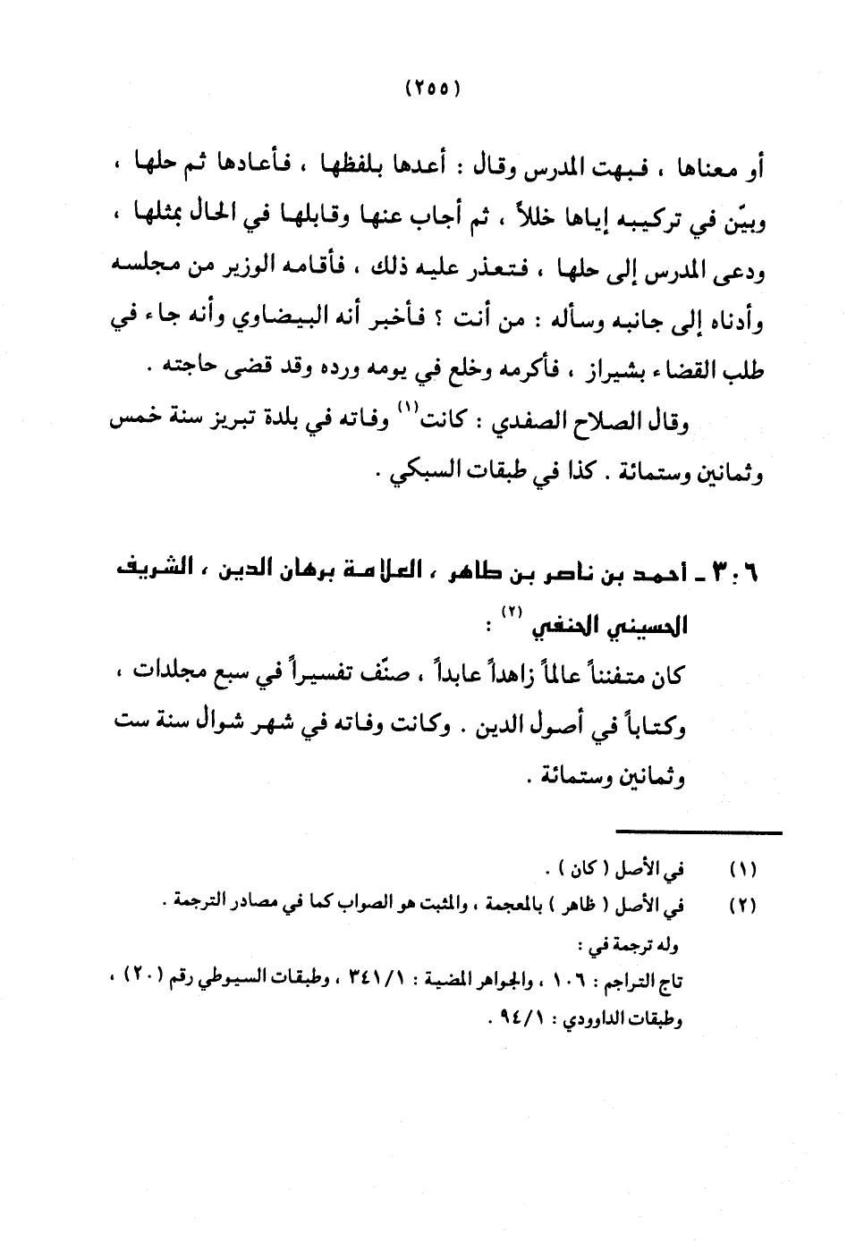 306 - أَحْمد بن نَاصِر بن طَاهِر الْعَلامَة برهَان الدّين الشريف الْحُسَيْنِي الْحَنَفِيّ